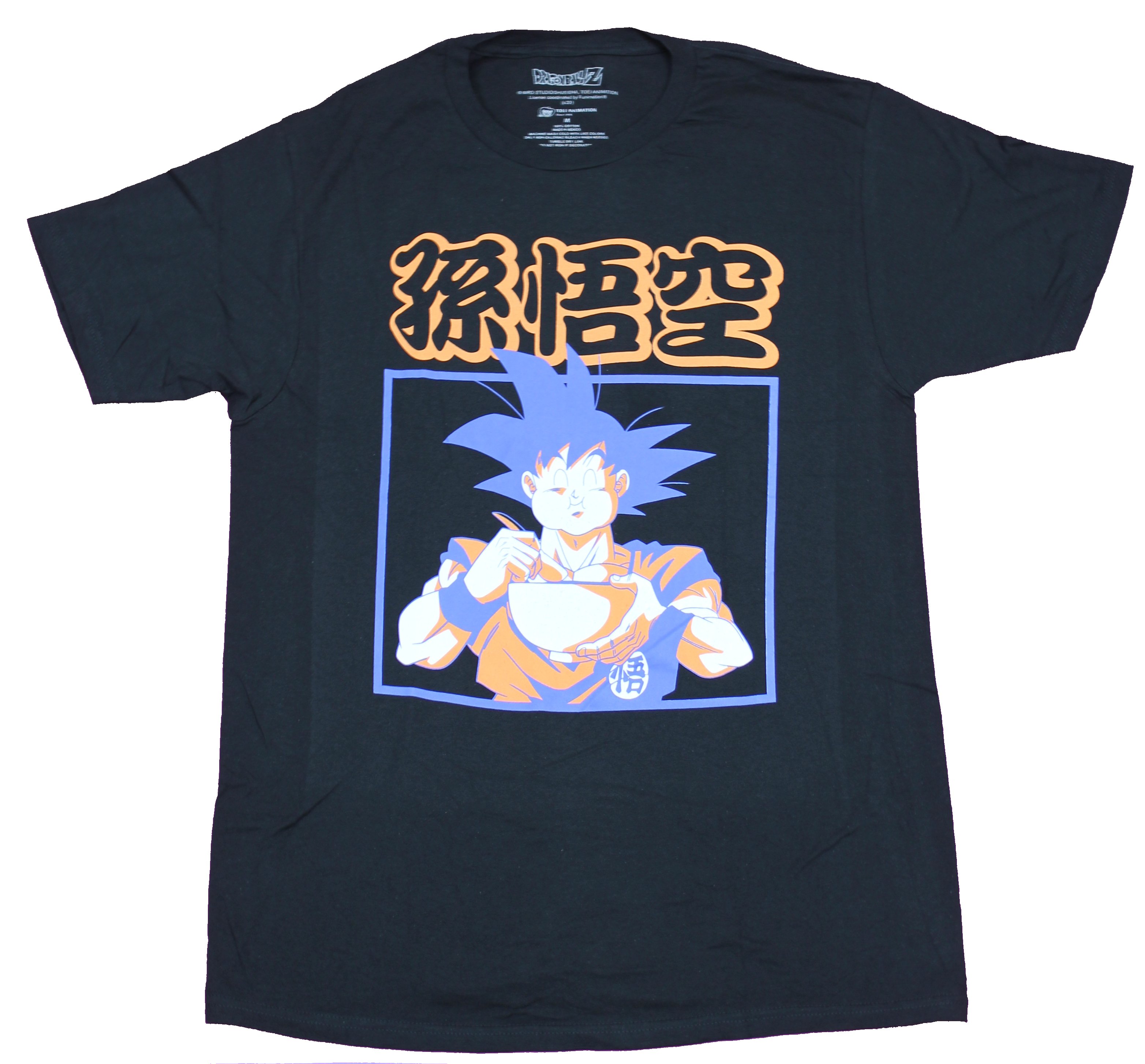 Dragon Ball Z Adult New T-Shirt - Goku Chowing Ramen Under Kanji