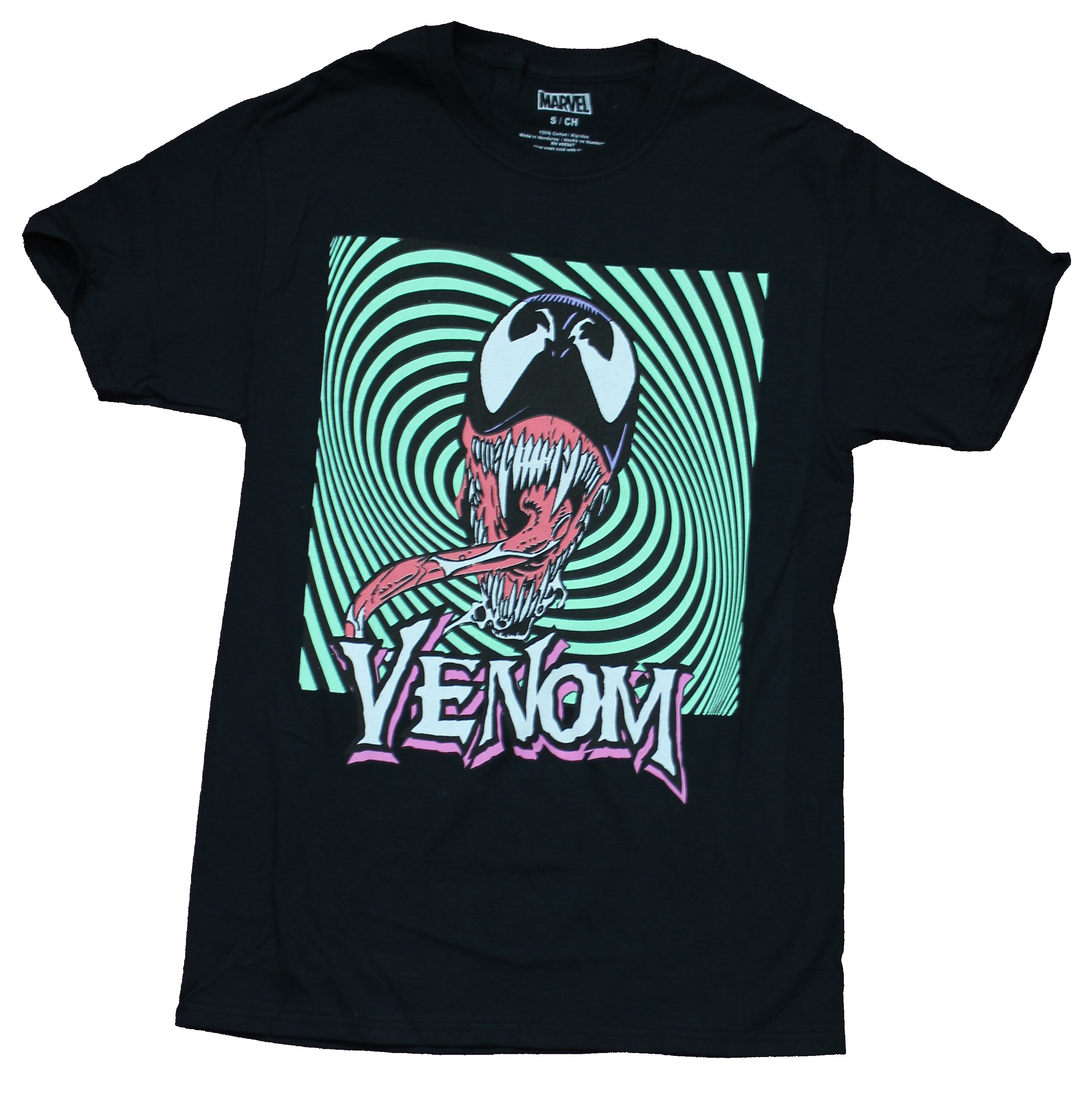 Venom Marvel Comics Adult New T-Shirt - Crazy Tongue Face Green Hypnotic