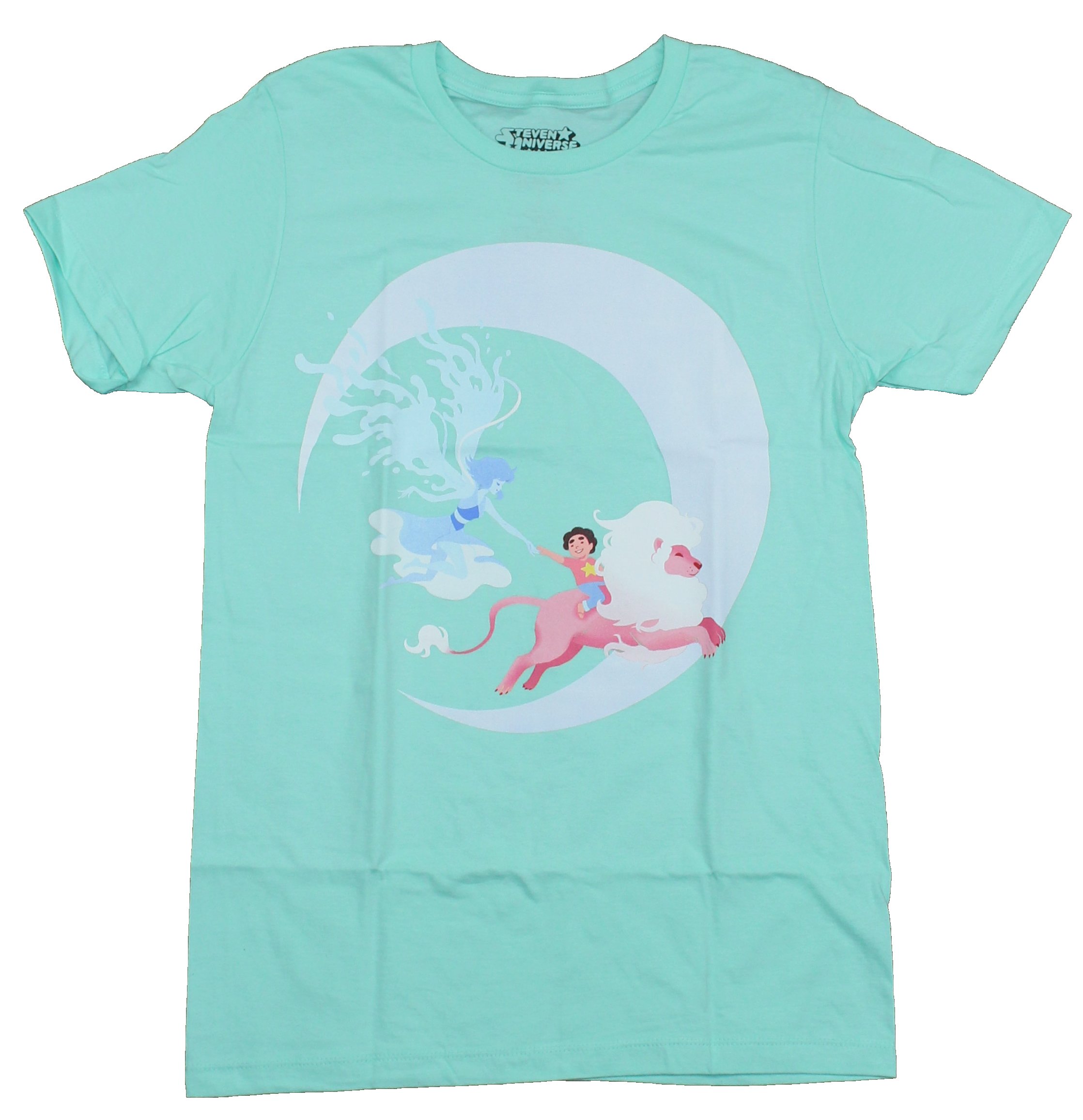 Steven Universe Adult New T-Shirt - Over The Moon Stylized Moon Lion Lapis Ride