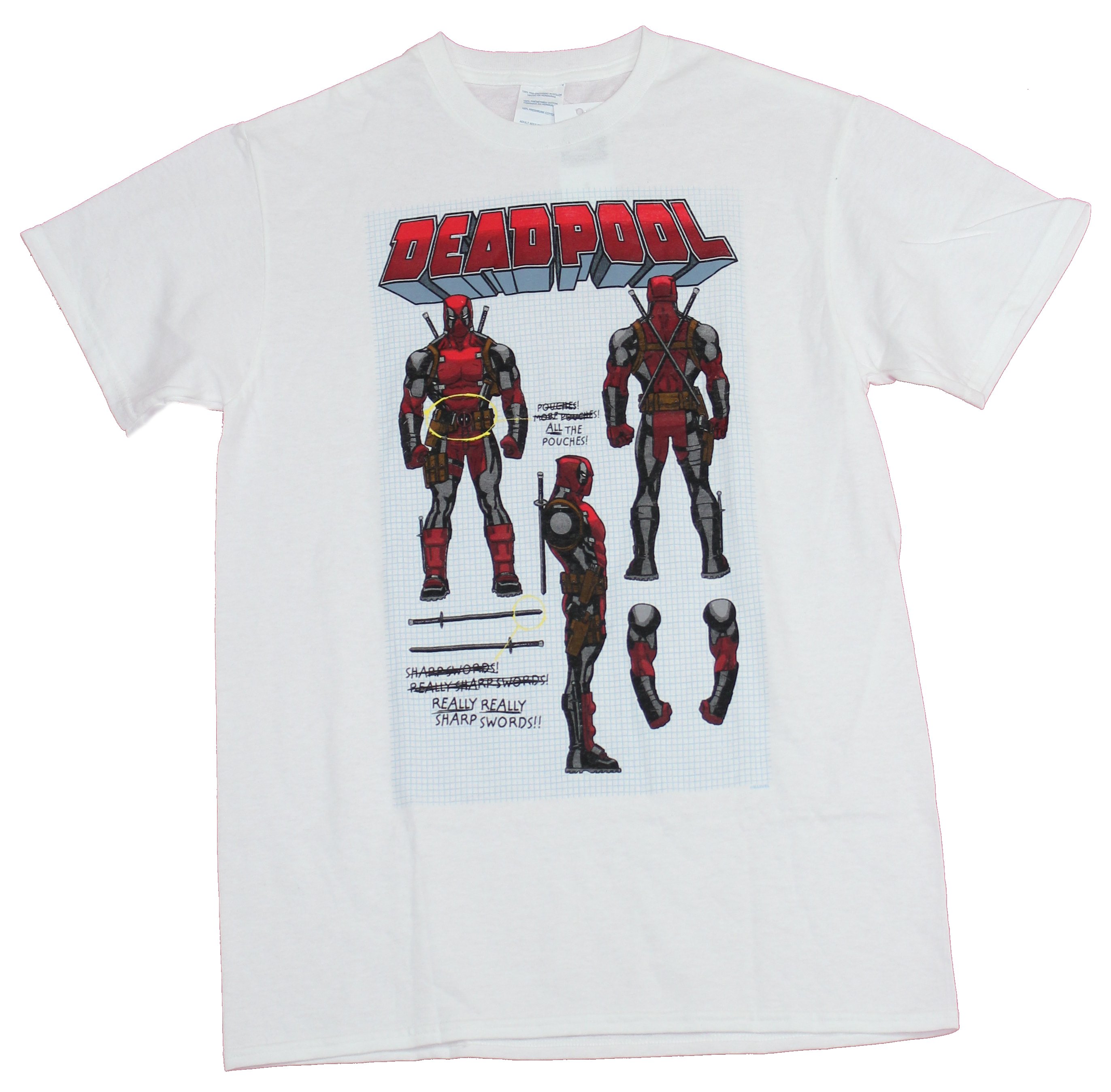Deadpool Mens T-Shirt - Character Design with Comments