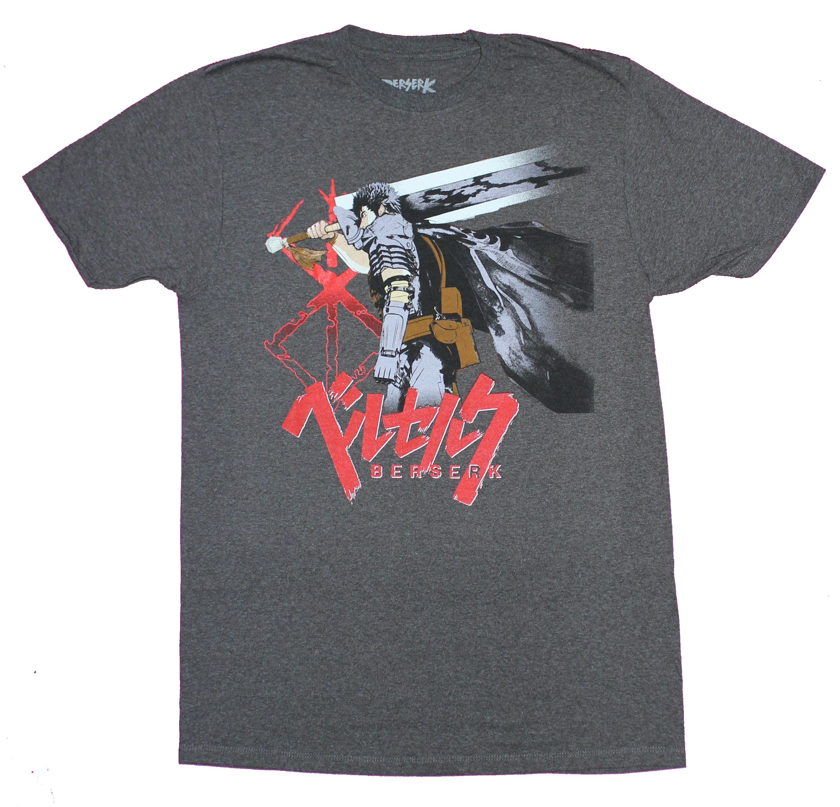 Berserk Adult New T-Shirt - Guts Battle Ready Sword on Shoulder Pic