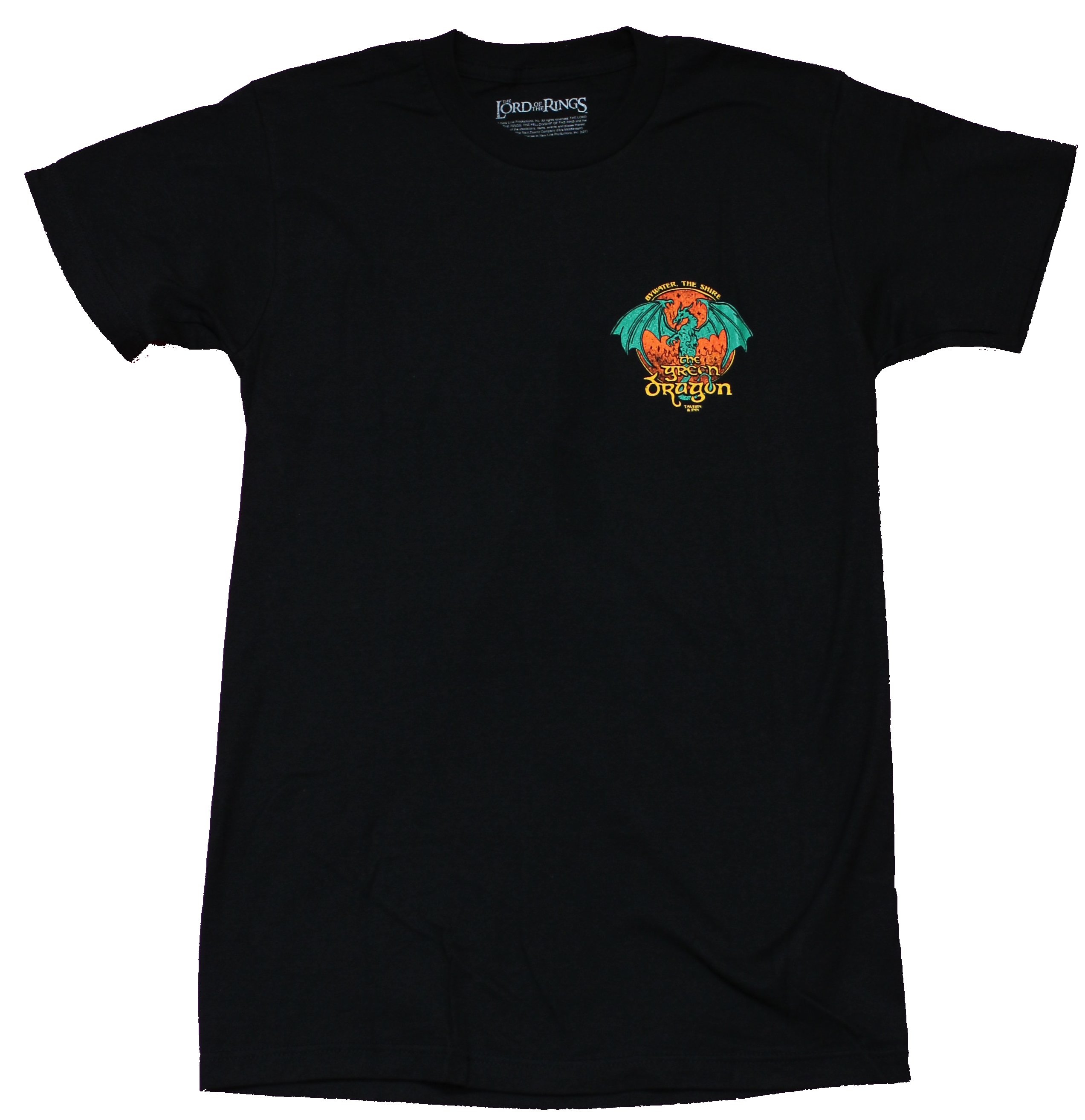 Lord of the Rings Mens T-Shirt - The Green Dragon Lapel & Back Logo
