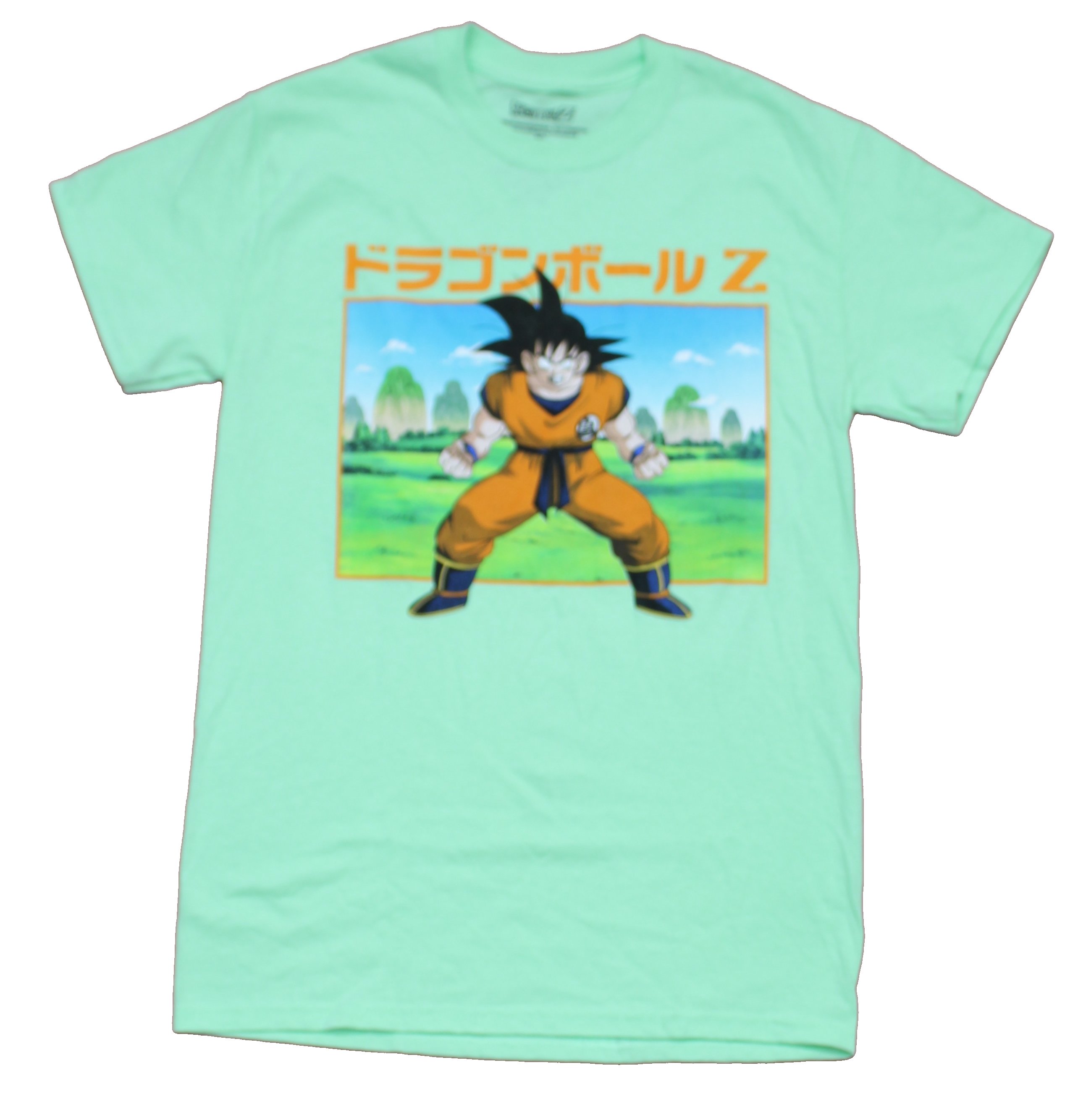 Dragon Ball Z Mens T-Shirt - Goku Battle Ready Stance Under Orange Kanji