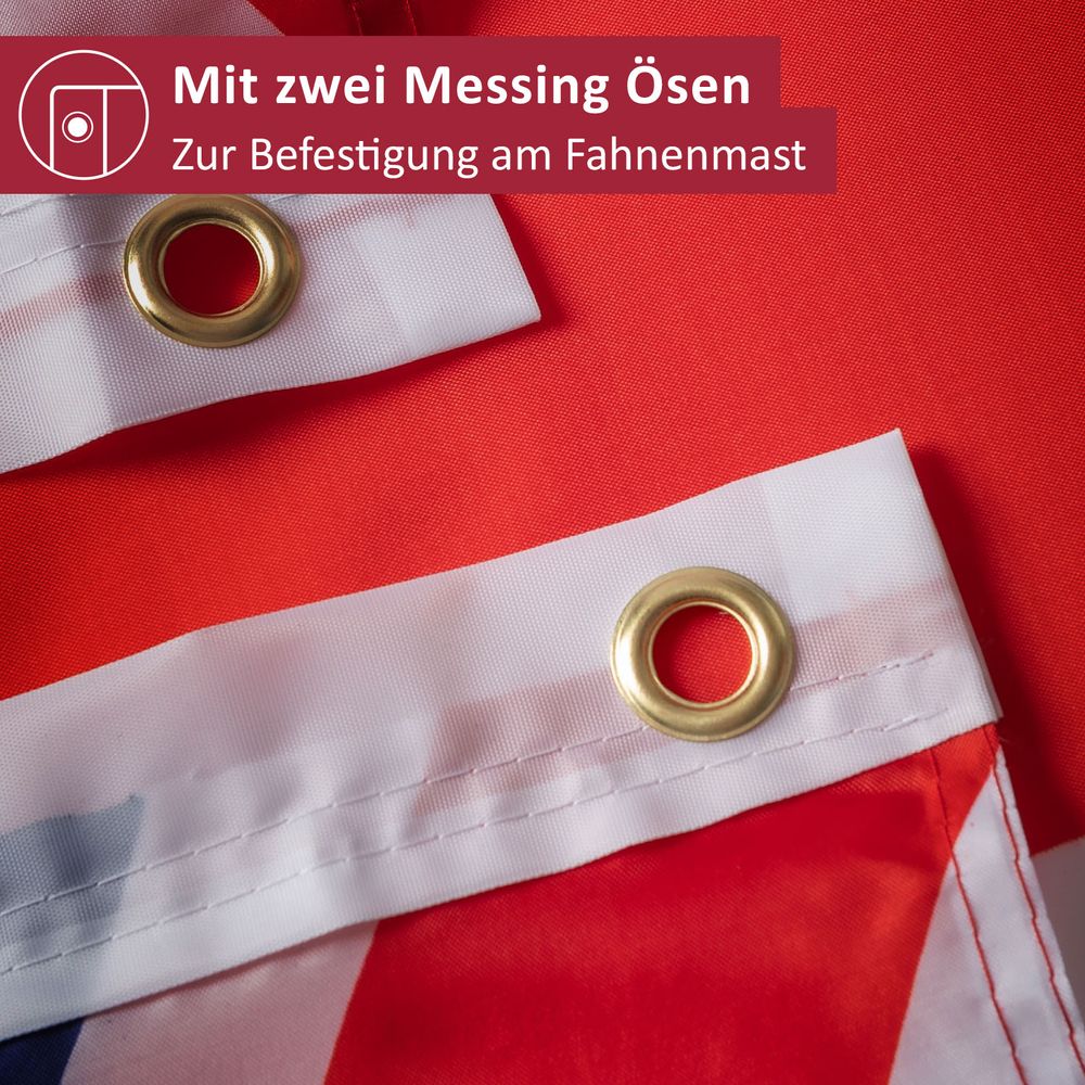 UNSERE QUALITÄT: ✓ wetterfest ✓ doppelt umsäumter Fahnenrand ✓ robuste Ösen aus Messing ✓ intensive Farben