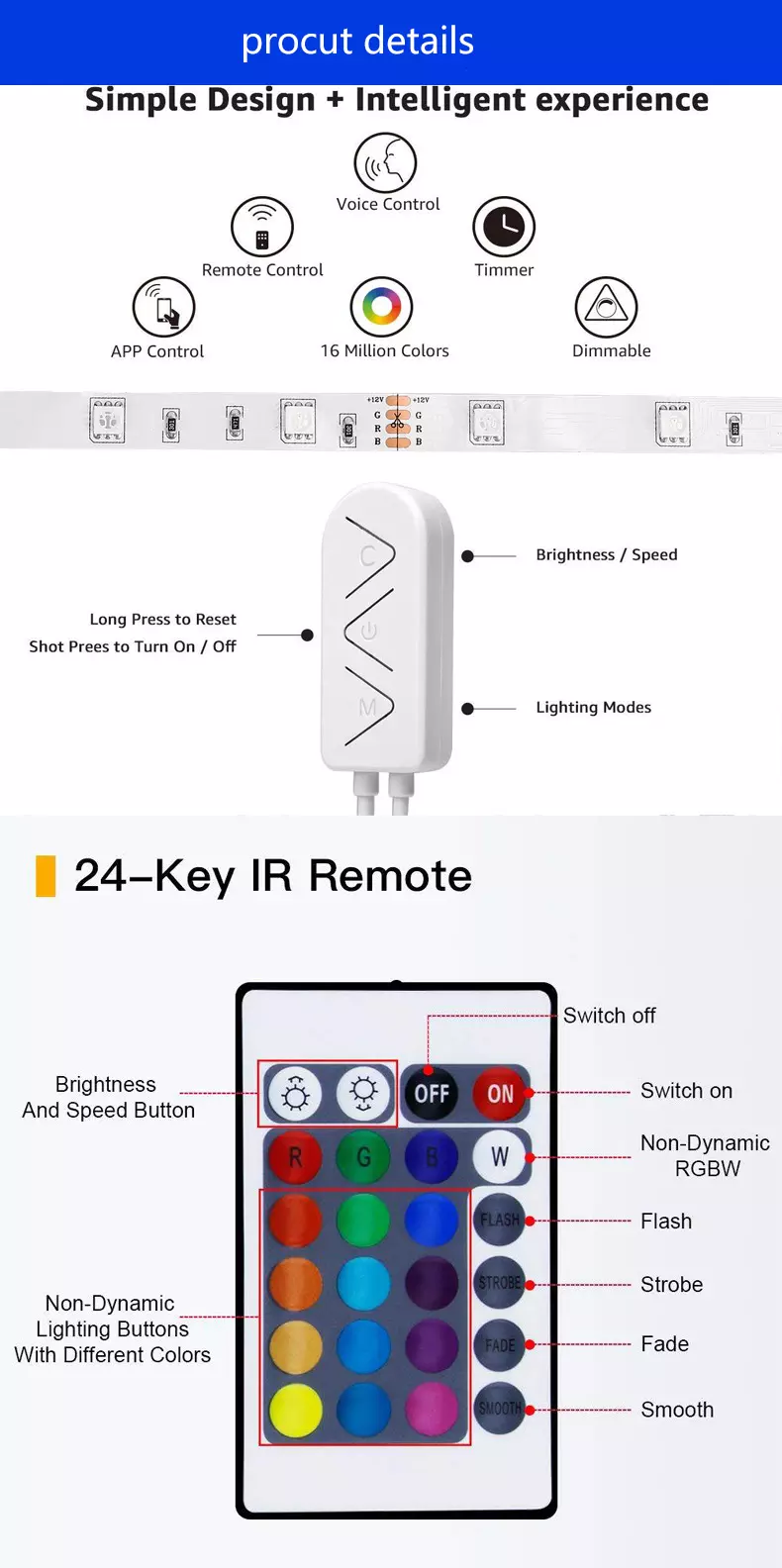 1 piece x 24 Key IR Remote (CR2025 Battery include)