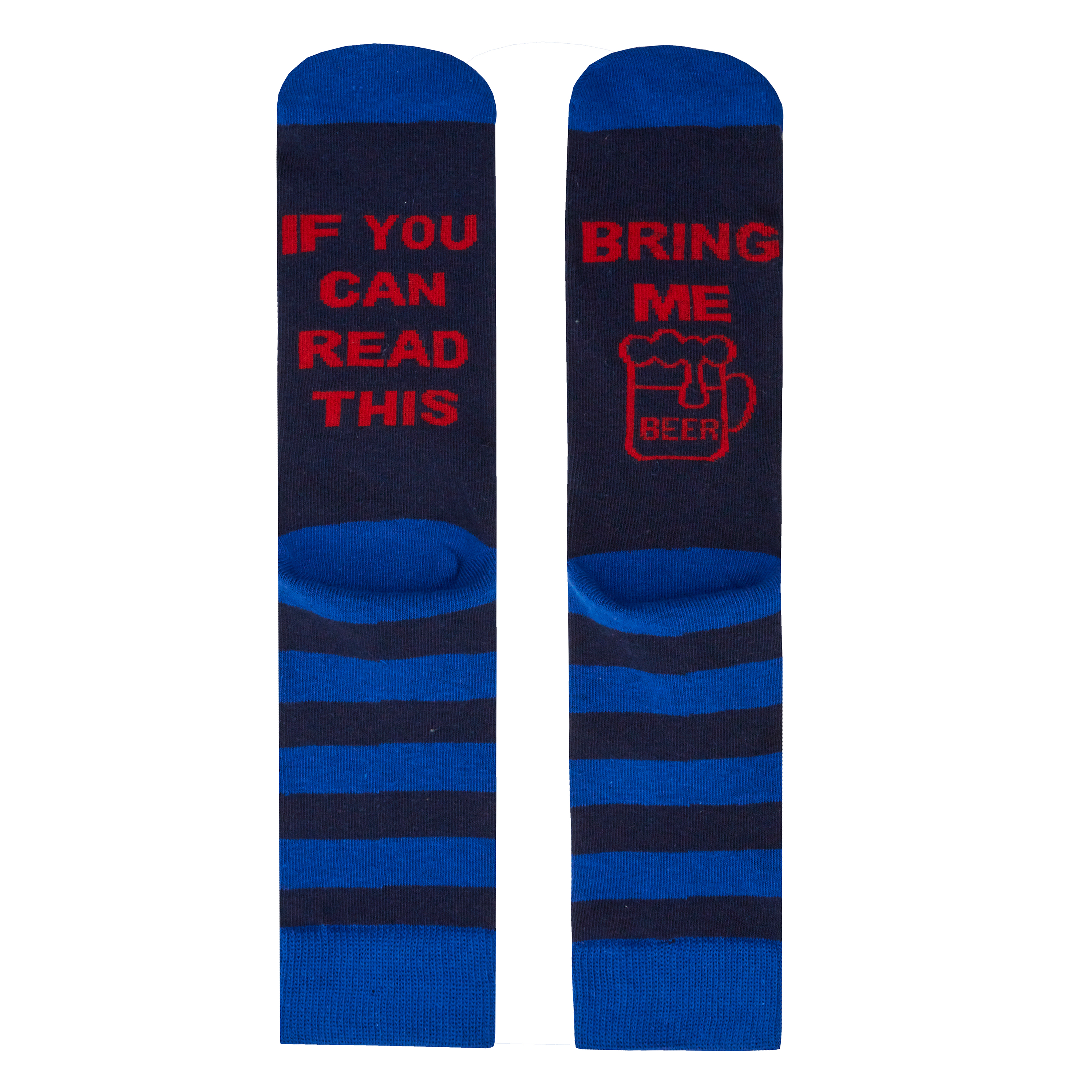 Mens Slogan Crew Socks Bring Me Beer Sole Text Blue Navy Mid Calf Size UK 6-11