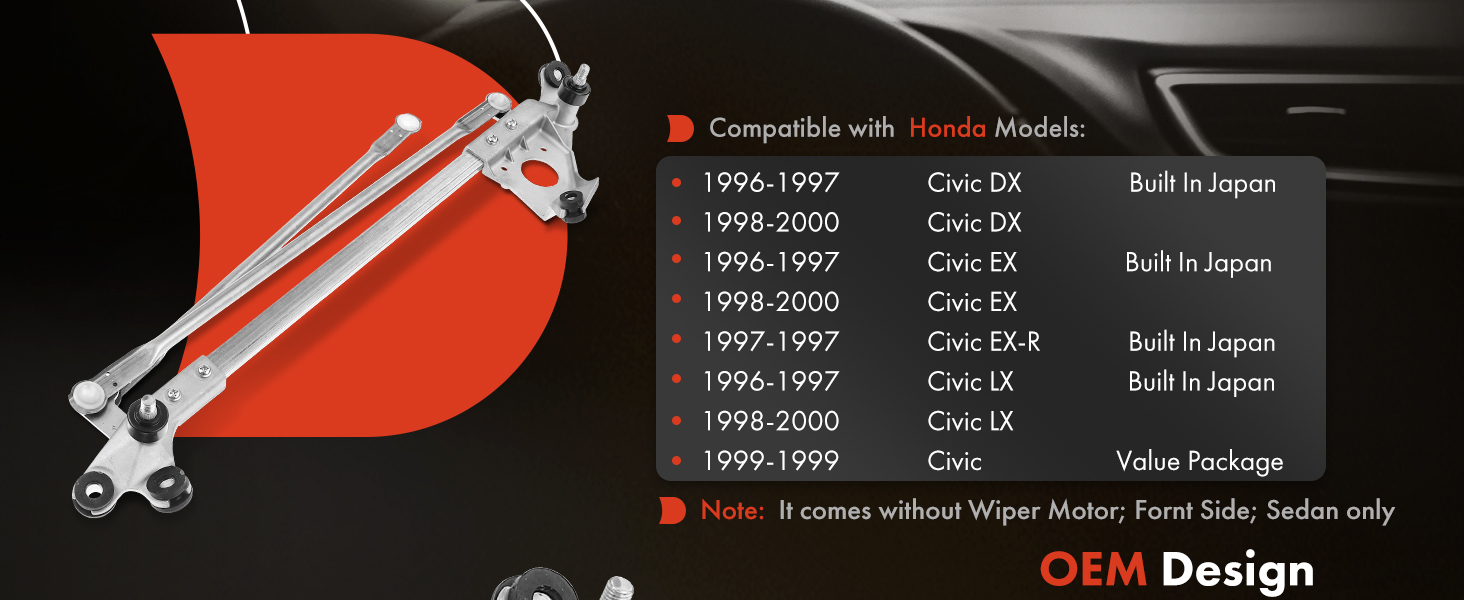 A-Premium Windshield Wiper Linkage Front for Honda Civic 1996 1997 1998 1999