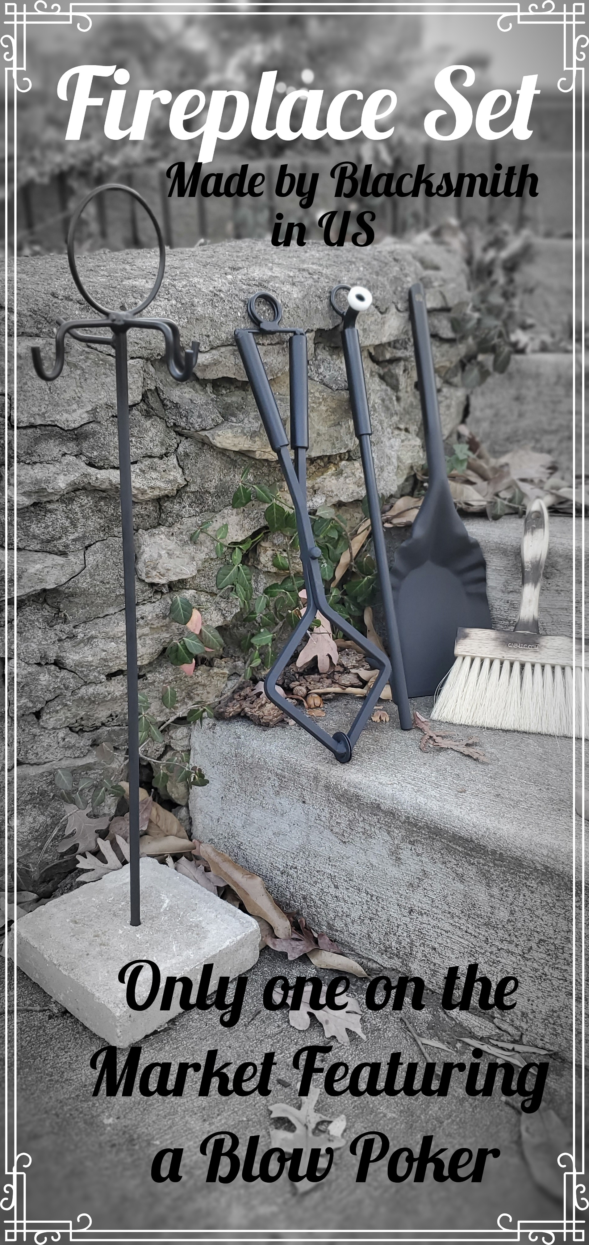 This set was inspired by a customer that wanted a simple but elegant & sturdy fireplace set. He said..."All the sets out there fall apart & are cheaply made. I love your "Blow Poker" design. I'm needing a set that goes with my stone-built fireplace."