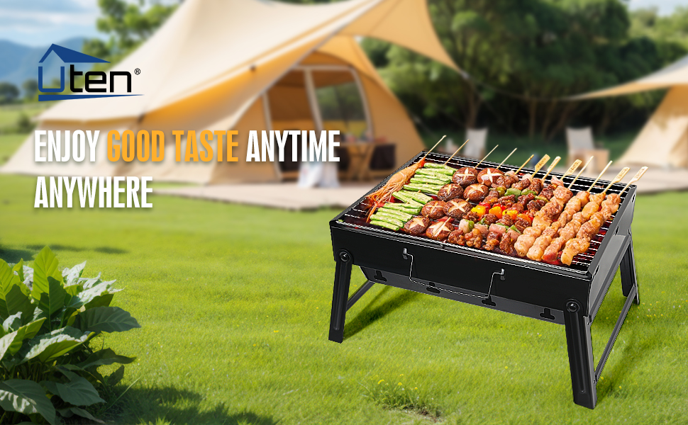 Uten Portable Foldable Charcoal BBQ Grill Smoker Tabletop for Outdoor Picnic