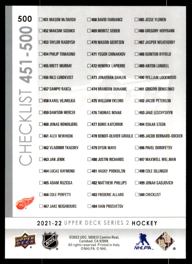 | 2021-22 Upper Deck Young Guns Moritz Seider/Lucas Raymond Detroit Red Wings #500 |