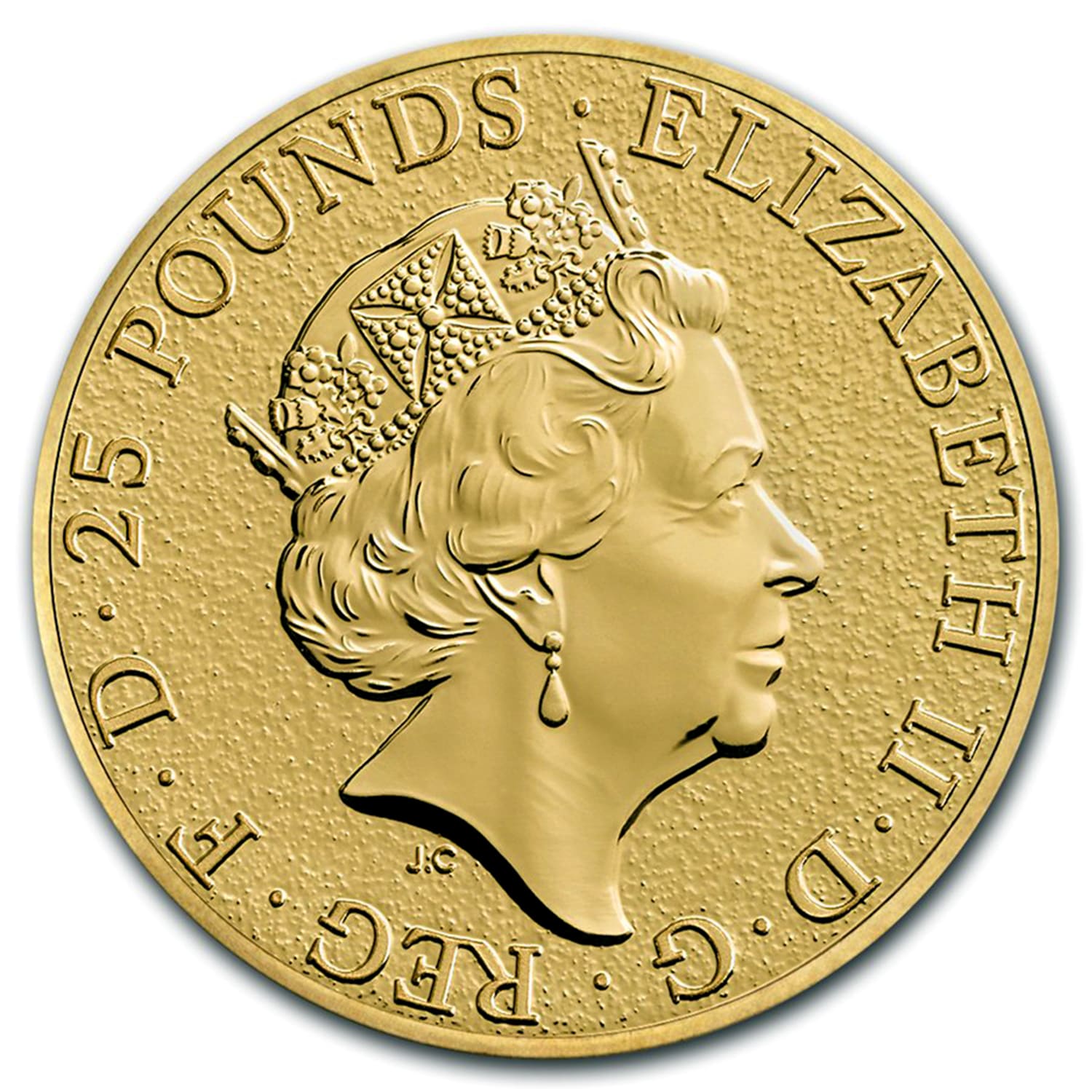 - Obverse: Displays the effigy of Her Majesty Queen Elizabeth II, along with the face value of 25 pounds.