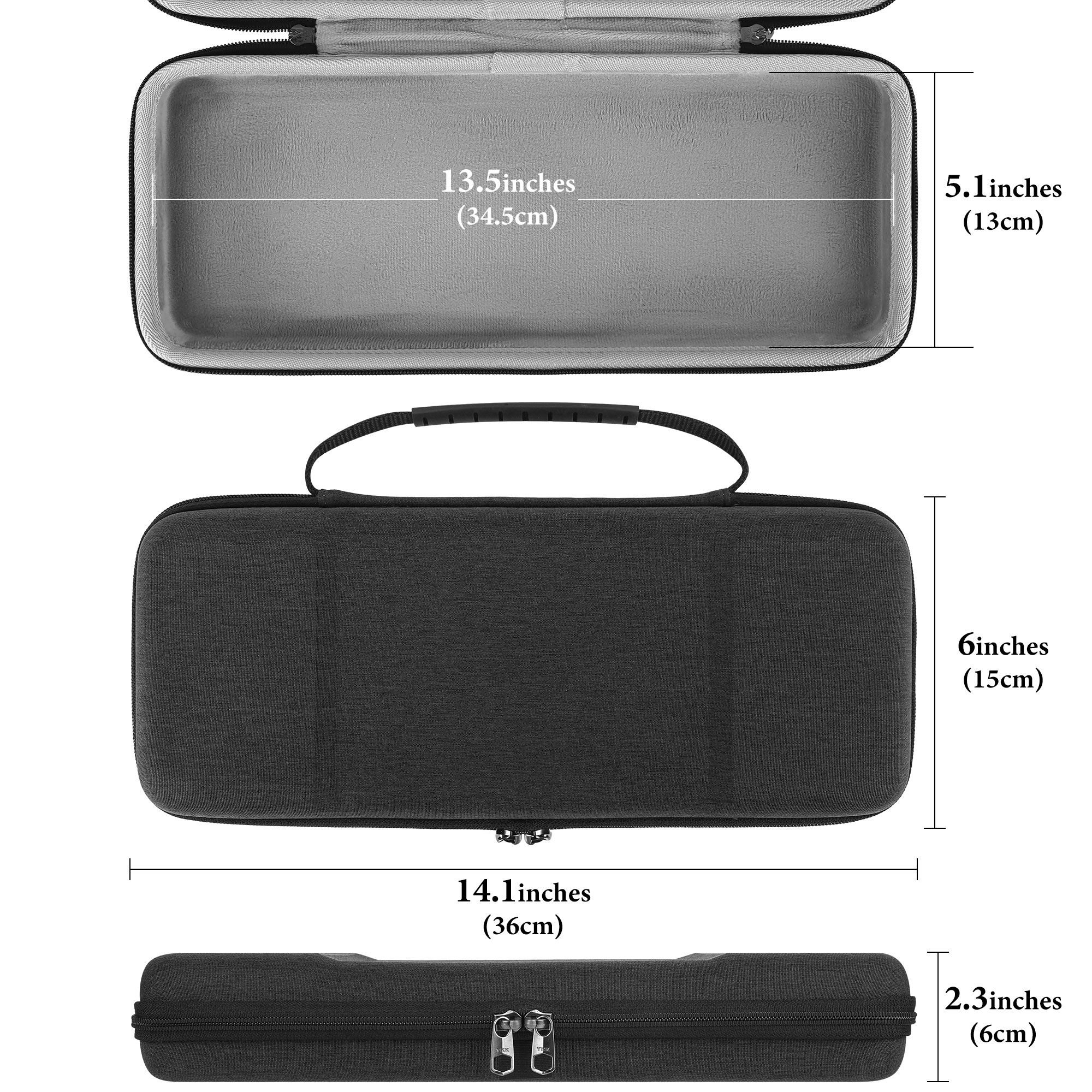 - Maximum compatible keyboard dimensions (case inside): 13.5 x 5.1 x 1.7 inches (34.5 x 13 x 4.5 cm).