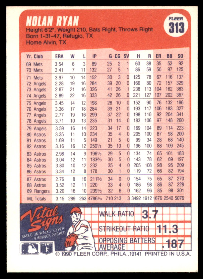 | 1990 Fleer 313 Nolan Ryan B |