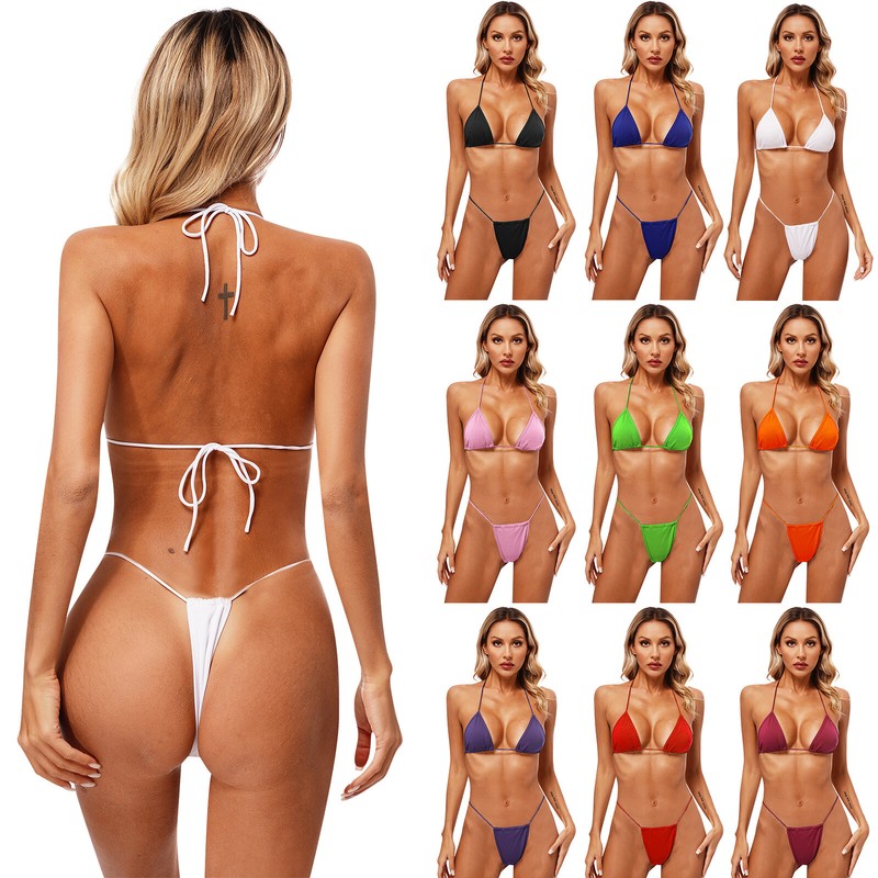 Self-tie design, halter neck tops with hot G-string bottom.