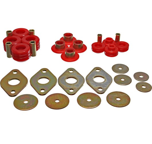 Worn out aluminum body mounts or mushy rubber bushings contribute to less than stellar handling and compromised safety. These problems are easily remedied with a polyurethane body mount kit by Energy Suspension, whose components outperform and outlive other materials. Energy Suspension, world-renowned for its innovative polyurethane suspension parts, provides enthusiasts with performance solutions engineered to last.