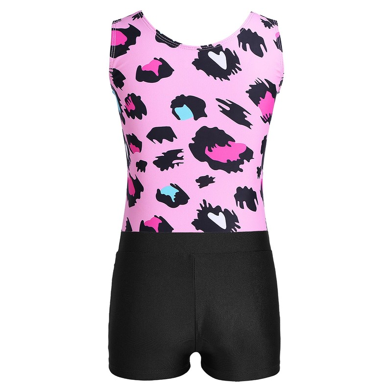 Sleeveless, round neckline leotard. Splice style with printed pattern.