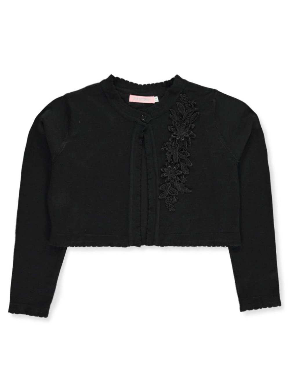 Pink Butterfly Girls' Floral Accent Knit Shrug - black, 4