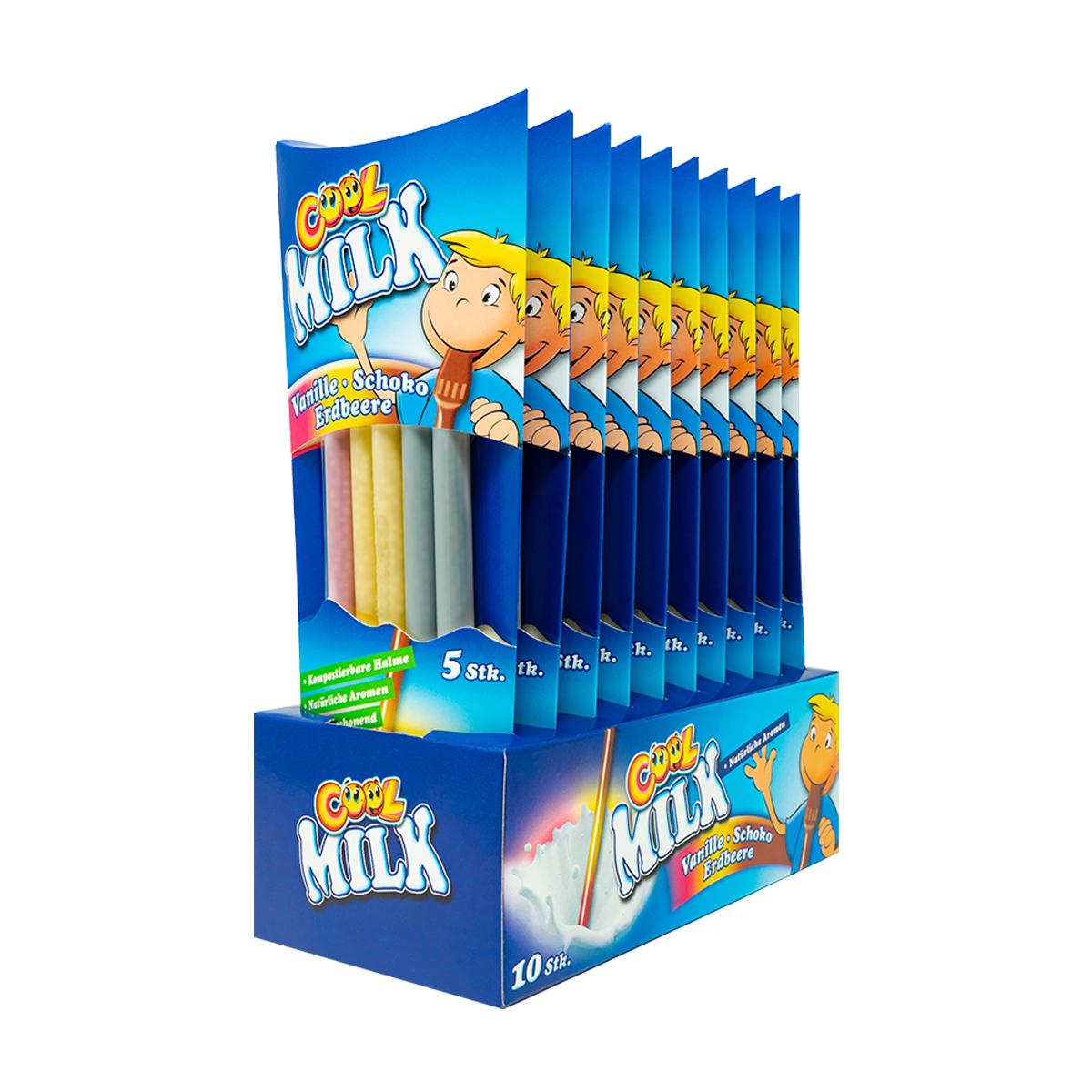 3 leckere Sorten Vanille, Schoko, Erbeer Geschmack und leckere Milch sind eine tolle Kombination. Wieso also nicht Beides aus einem Glas genießen? Einfach die frische Milch ins Glas kippen und den Cool Strohhalm dazu. Beim Saugen lösen sich die Aromaperlen im Halm und fertig ist die Cookie Milch.