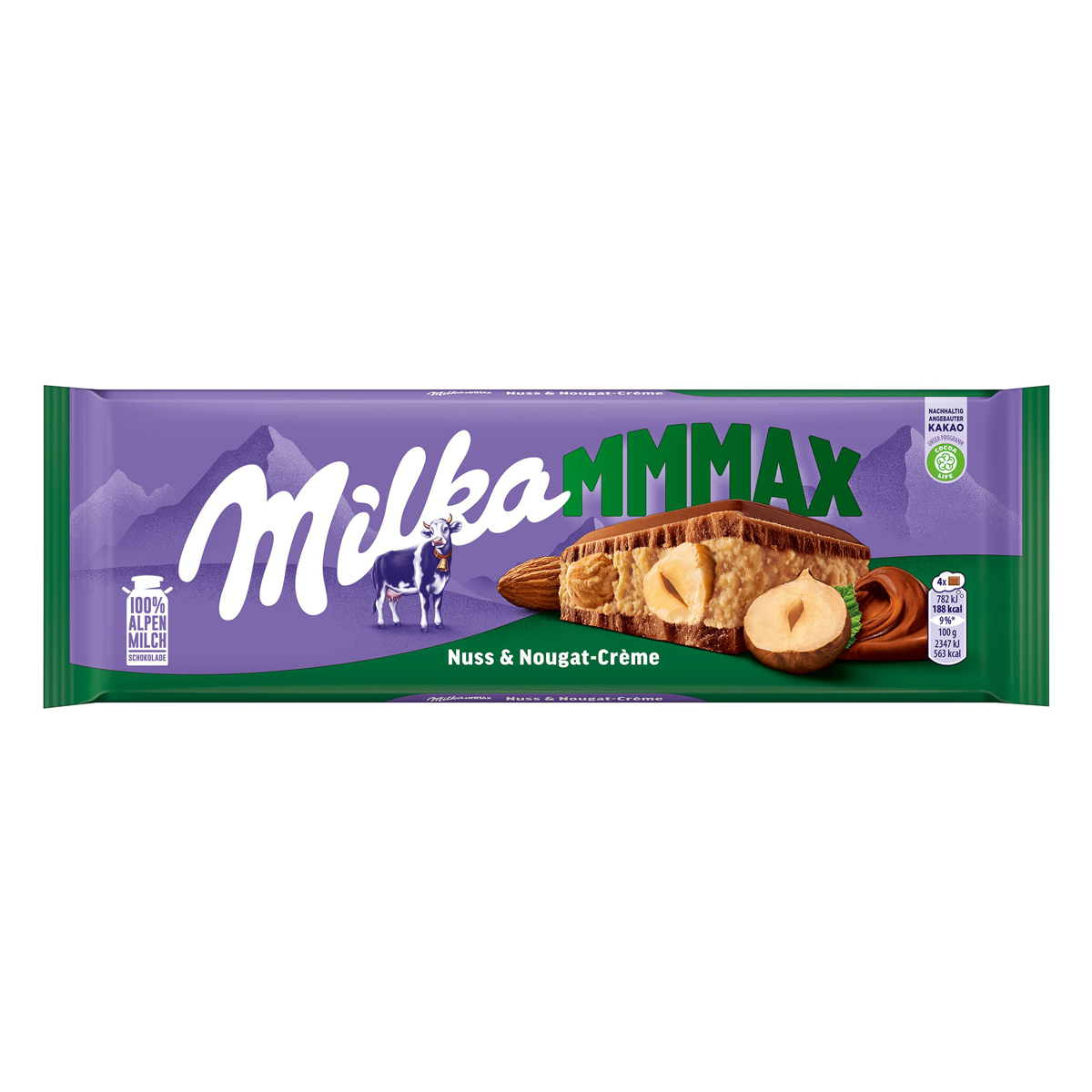 Im praktischen Großformat, damit der zarte Milka Schokoladengenuss so schnell nicht endet. Milka - Nuss & Nougat-Créme Alpenmilchschokolade mit einer leckeren Füllung aus cremiger Nougat-Créme und knackigen ganzen Haselnüssen.