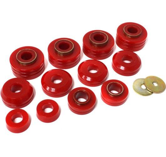 Worn out aluminum body mounts or mushy rubber bushings contribute to less than stellar handling and compromised safety. These problems are easily remedied with a polyurethane body mount kit by Energy Suspension, whose components outperform and outlive other materials. Energy Suspension, world-renowned for its innovative polyurethane suspension parts, provides enthusiasts with performance solutions engineered to last.