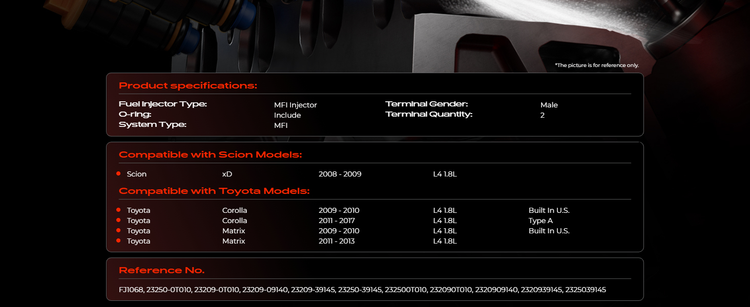 4Pcs Fuel Injector for Toyota Corolla 2009-2018 Matrix 09-13 Scion xD 08-09 1.8L