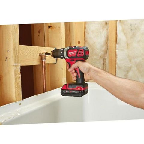 The Milwaukee M18 Compact 1/2-Inch Drill Driver (Tool Only) generates up to 500 inch-pounds of torque for fast drilling into most construction materials. This cordless drill-driver runs on the M18 REDLITHIUM series of long-running, durable batteries. REDLINK design keeps the drill running at optimum power while simultaneously preventing overloads and overheating. This compact drill driver weighs just 3.32 pounds for easy all-day work. An all-metal gear case and chuck protect the inner workings from drops and impacts for an extended operational life. This drill is just 7-3/4 inches long to reach tight spaces. A keyless chuck allows you to quickly change out your bits, even when you're on a ladder or in another tricky position, for fast job completion. Additional Features Milwaukee M18 Compact Drill Driver provides 500 inch-pounds of torque for easy drilling Milwaukee drill driver utilizes the REDLINK system for power management and safety Weighs only 3.32 pounds for strain-free work periods M18 drill driver includes all-metal gear case and chuck for exceptional durability Drill is just 7-3/4- inches long to fit where other drills can't Keyless chuck makes bit changes easy and convenient 5-year manufacturer warranty Assembled Weight (lbs): 3.32 Battery Ampere-hour (Ah): 0.0 Battery Composition: Lithium-Ion (Li-ion) Battery Voltage: 18 CSA Certified: Yes Product Storage Included: No Case Included Charger Included: No Chuck Design: Keyless Chuck Size: 1/2 in Clutch Settings: 22 Color / Finish: Red/Black Cordless / Corded: Cordless Country of Origin: CHN Drill Type: Variable Speed Drill ETL Listed: Yes Internet Product Code (IPC): 1BADC05E456 Length (in): 7.75 Lock-on Switch: No Maximum RPM: 1800.000000 Maximum Torque (in-lbs): 500.0000 Net Tool Weight (lbs): 3.32 Number of Batteries Required: 1 Overload Protection: Yes Package Weight: 3.32 Powered Tool Power Source: Electric - Cordless Reverse: Yes Side Handle: No Switch Type: Trigger UL Listed: Yes Variable Speed: Yes Warranty: 5-Year Tool Warranty Width (in): 3.5 Internal Supplier Part #: 2606-20 MFG Model # (Series): 2606-20 MFG Part # (OEM): 2606-20 Product Name: M18 Compact 1/2 In. Drill Driver - Tool Only UPC: 045242313426 Top Rated: 5.0 Housing Material: Metal Rocker Switch: No Air Shipment Restricted: N Prop65 Compliant: N Carb Compliant: N