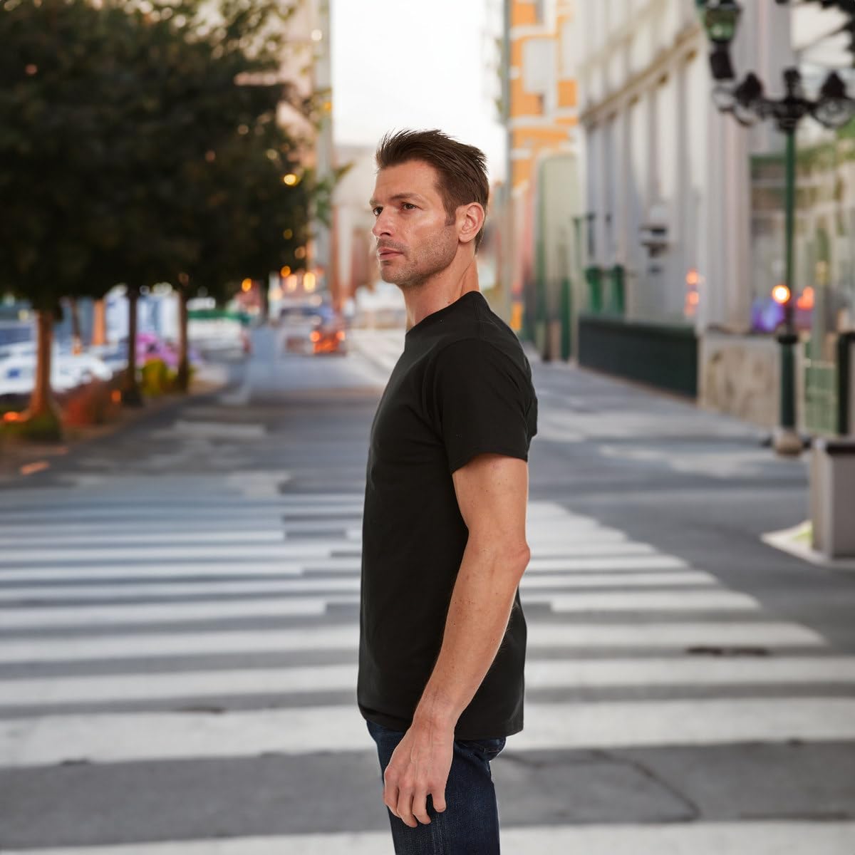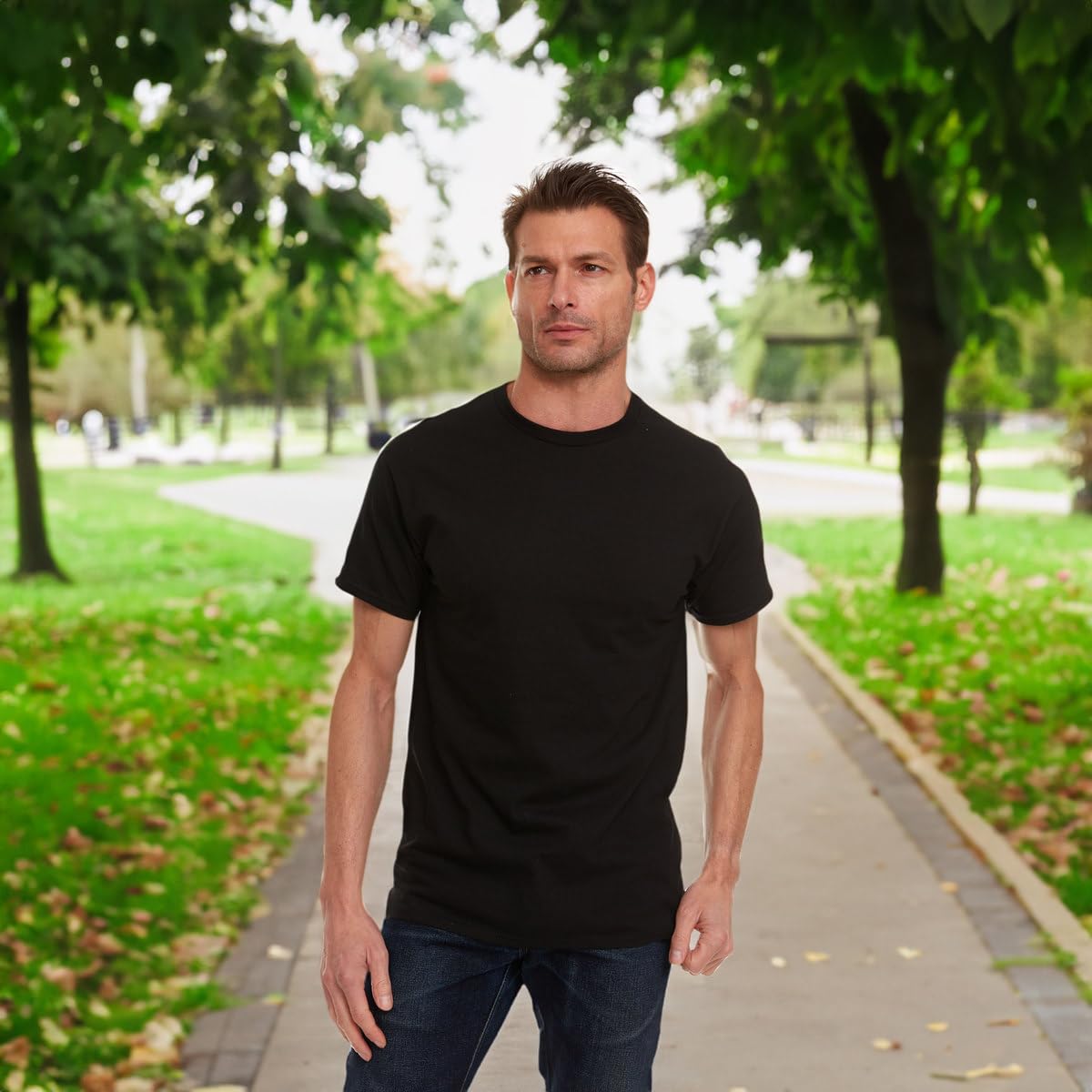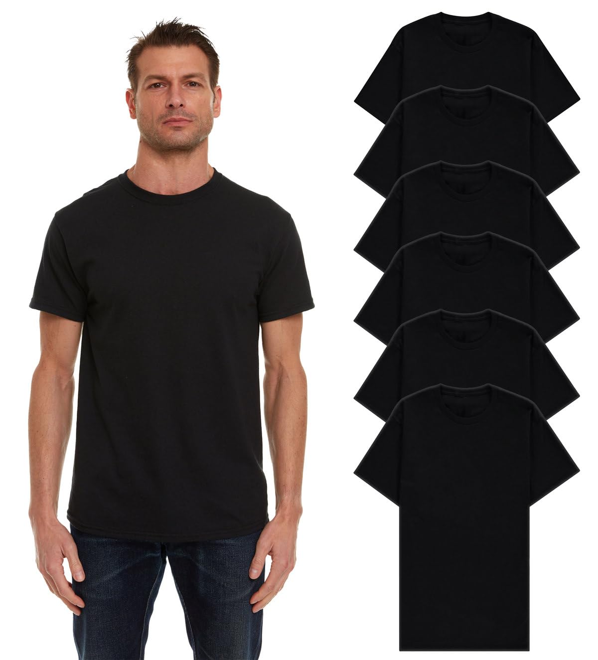 Different packs of men's cotton t-shirts in black color. Made with 100% pre-shrunk cotton for extra softness. Pre-shrunk cotton tee's are perfect for layering or wearing alone. Lightweight fabric keeps you cool and dry so you can look great and feel great all day. Affordable, casual and cool, these tee's are your new wardrobe staple.