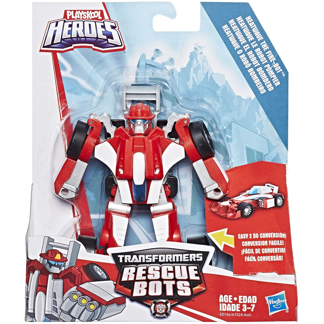 Imagine saving the day with Heatwave the Fire-Bot! The Playskool Heroes Transformers Rescue Bots figure is ready to roll into action. As a slick race car, Heatwave the Fire-Bot is just one of many heroes that kids can imagine speeding to the rescue when there's trouble on Griffin Rock. Imagine transforming this heroic figure from a robot to a vehicle for even more adventures! (Subject to availability). Kids will love creating their own stories with other Playskool Heroes Transformers Rescue Bots.