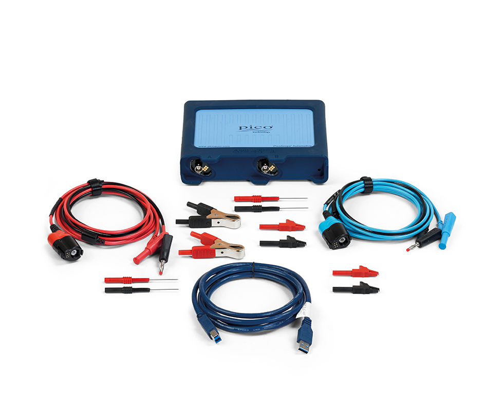 A PicoScope (sometimes known as a labscope) turns your laptop or desktop PC into a powerful diagnostic tool. Think of it as the X-ray machine of diagnostics, letting you see the changing signals inside wires. You can purchase a PicoScope on its own, but most people purchase one of our award-winning Automotive Diagnostics Kits. These money-saving kits contain everything you need – just add a PC. The Pico Automotive Diagnostics Kits work with your PC to measure and test virtually all of the electrical and electronic components and circuits in any modern vehicle including: Ignition (primary and secondary) Injectors and fuel pumps Starter and charging circuits Batteries, alternators and starter motors Lambda, airflow, ABS and MAP sensors Electronic throttle control CAN bus, LIN bus and FlexRay Find out why PicoScope is like no other oscilloscope with features and benefits that make it the world's leading choice for vehicle manufacturers and aftermarket garages alike. Our exciting PicoBNC+® probe connectivity, unique to PicoScope 4225A and 4425A oscilloscopes, provides you with: ---Smart probe interfacing so that all your probe configuration takes place in the software - no more incorrect probe switch positions! ---Powered probes that are always on and ready to go - no more flat batteries, current clamp zeroing, or auto-off! ---Channel status lights to show you which probes and channels to connect and their status when you load a data file or guided test ---Future-proofing of your diagnostic capabilities as we develop new probe technologies. ---Full backwards-compatibility with BNC for all your existing PicoScope or third-party probes All our automotive PicoScopes have the features that have already helped technicians around the world with vehicle diagnostics: ---400 M samples/second and 20 MHz bandwidth to make sure you can test the latest vehicles such as those with high-speed FlexRay or CAN-FD networks ---12-bit (16-bit enhanced) resolution - your waveforms in high definition ---250 M sample memory for long-duration captures; ideal when you are trying to diagnose intermittent faults ---USB 3.0 data transfer speeds and power, providing you with high performance and portability <a class="imgRight zoom fancybox" style="margin-top: 20px; margin-bottom: 20px; margin-left: 20px; cursor: zoom-in; color: #0d63a0; float: right; width: 343.094px; display: block; font-family: Roboto, Verdana, Arial, Helvetica, sans-serif; font-size: 13px; position: relative !important;" target="_blank">![PicoScope Automotive Software screenshot] (https://www.picoauto.com/images/uploads/screenshots/_sml/PS7AutomotiveSoftware.png)</a> PicoScope Automotive software PicoScope Automotive software and oscilloscopes are optimized to work together to give you total trust in the waveforms you capture. With PicoBNC+™ compatible devices, PicoScope software sets up your scope automatically. You can use channel, sampling and trigger controls to capture your waveform precisely as you want it. PicoScope Automotive helps you determine your waveform characteristics with a vast range of easy to use and configurable analysis tools: ---Time and voltage rulers ---Rotation rulers ---Measurements ---Waveform buffers ---Zoom ---Views ---Filters ---Math channels ---Reference waveforms --- Masks and alarms automatically notify you if a waveform goes out of tolerance. PicoScope can fire off a software event (such as a save to file), meaning you don't have to hang around and wait for the error to show up. All of these features are wrapped up in a modern, easy-to-use interface. We leave the space free for what matters: your waveforms, displayed in crisp, clear high resolution. All of this, plus regular updates and new features, with no ongoing subscription. Included in the kit: 2 PicoBNC+ Premium test leads 2 Flexible backpinning probe (red) 2 Flexible backpinning probe (black) 2 Small crocodile/gator clip (black) 2 Small crocodile/gator clip (red) 1 Battery Clip (Red) 1 Battery Clip (black) 1 USB cable 1.8m Why do you need a PicoScope? Could you use a scan tool instead of a labscope? No, you need both. A scan tool only points you in the right direction, perhaps indicating a misfire on a specific cylinder, but rarely does it pinpoint a fault. For example, is the misfire caused by an ignition, injector, or a compression-related issue? Reliance on a scan tool alone can lead you to "parts darts" where you might find yourself replacing more and more parts until the fault goes away. Instead, a PicoScope helps you: ---Eliminate guesswork and test individual components before replacing them. ---Find troublesome intermittent faults. ---Investigate vehicle problems when there are no, multiple, or misleading fault codes. ---Diagnose charging and starting faults. ---Trace problems with actuators that are not monitored by the ECU, such as motors and injectors. ---Identify mechanical problems such as compression and slipped / incorrectly fitted timing belts. ---Prove the source of an NVH problem ---Report your objective findings back to your managers and customers As a technician, a PicoScope brings you faster, more efficient diagnostics and a clear understanding of the vehicle’s workings. As workshop owner, a PicoScope gives you a "fix it right" culture, with fewer parts changed on guesswork, and increased customer satisfaction, repeat business and profits. Help all the way You may know that you should be using an oscilloscope but are perhaps worried they are too difficult to use? If you are confident using a multimeter and scan tool, you will have no problem learning to use a PicoScope. The manual guides you step by step through installing the PicoScope and making your first measurement of battery voltage.