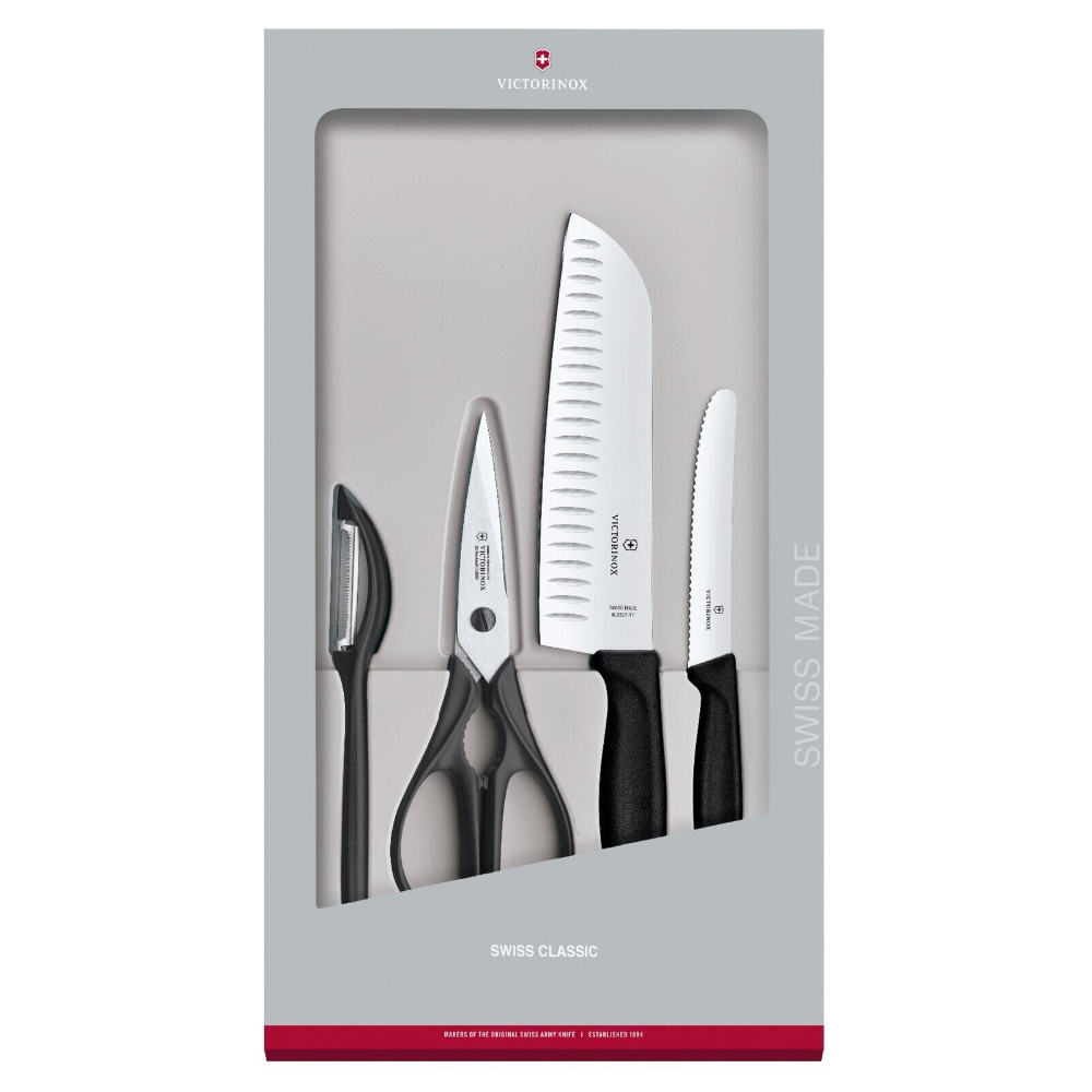 Start with the right tools and the culinary possibilities are endless. Invest in our Swiss Classic Kitchen Set, 4 pieces, and then build up your repertoire and countertop accessories around it. These are the essential go-tos for all your everyday culinary tasks. With ergonomic handles and ultrasharp blades, you'll be sure to get cooking in no time.
