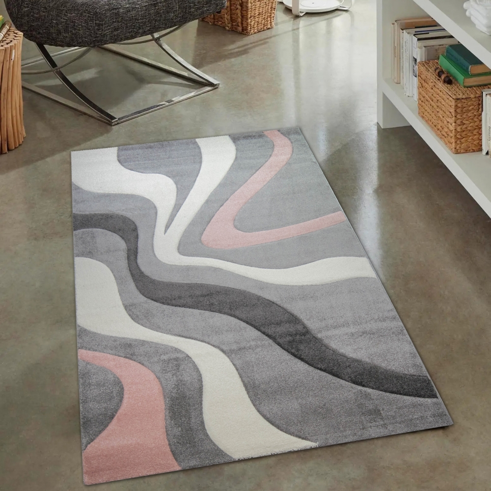 Notre tapis contemporain rose, blanc et gris est un choix parfait pour n'importe quelle maison. Ce tapis est non seulement esthétique, mais aussi antiallergique et résistant.