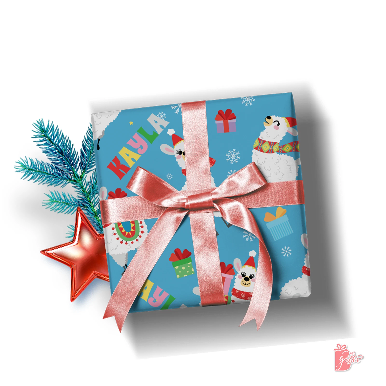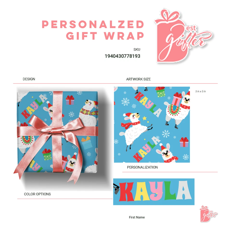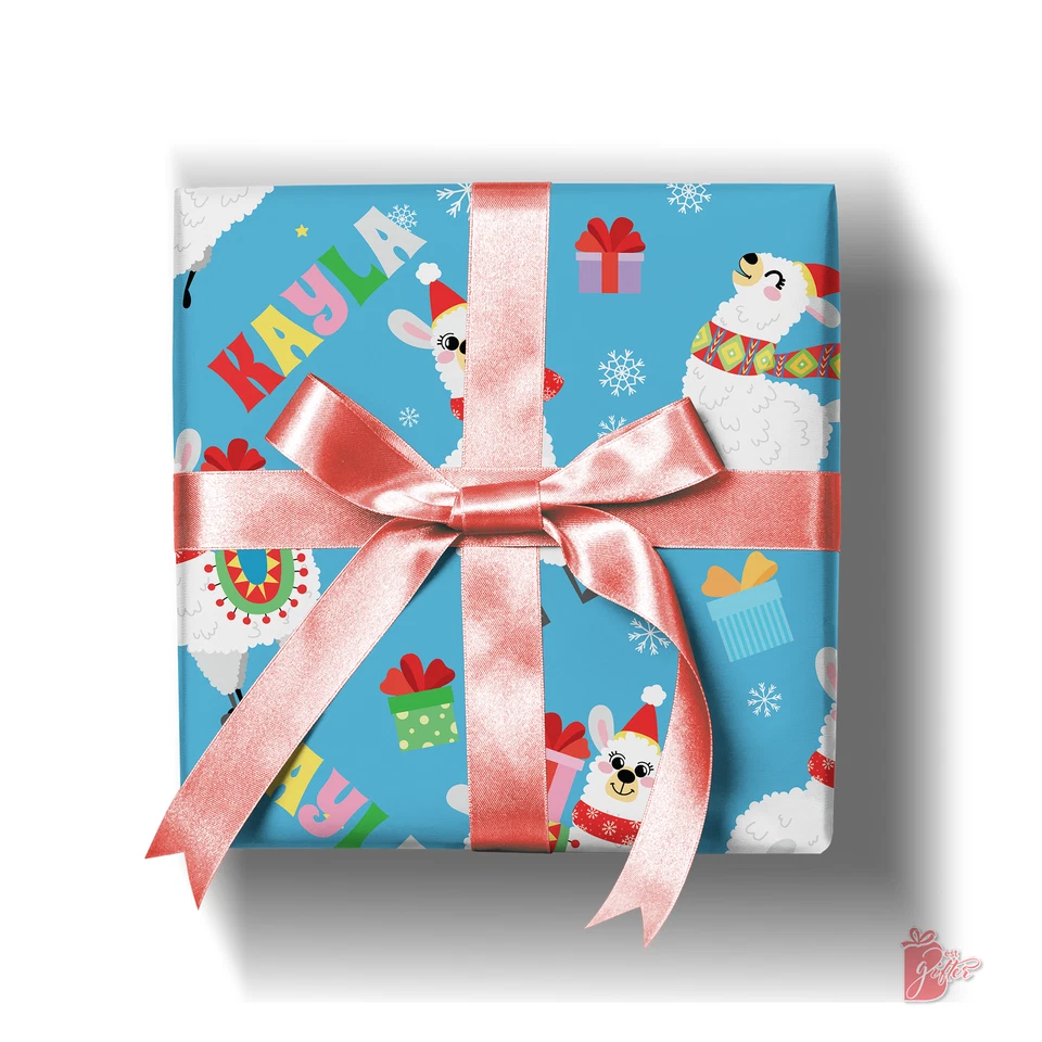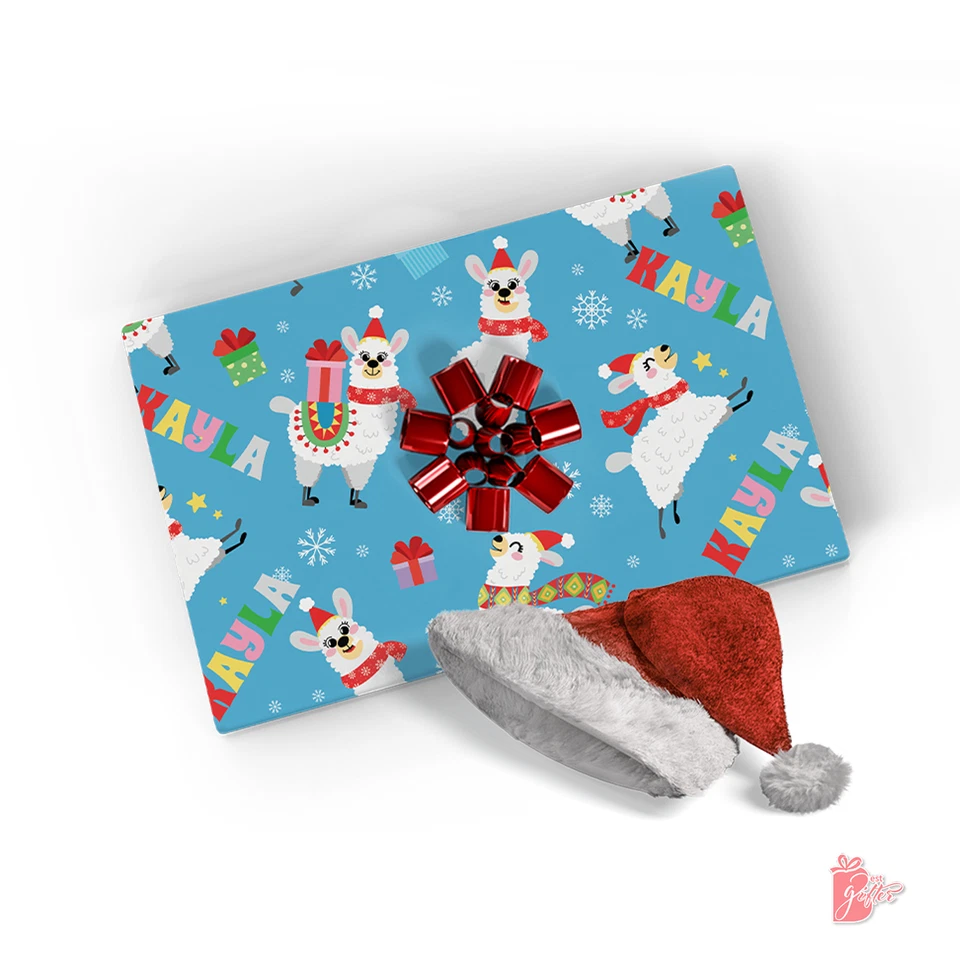 Name Personalization Custom Christmas Cute Jolly Llama gift wrapping paper roll