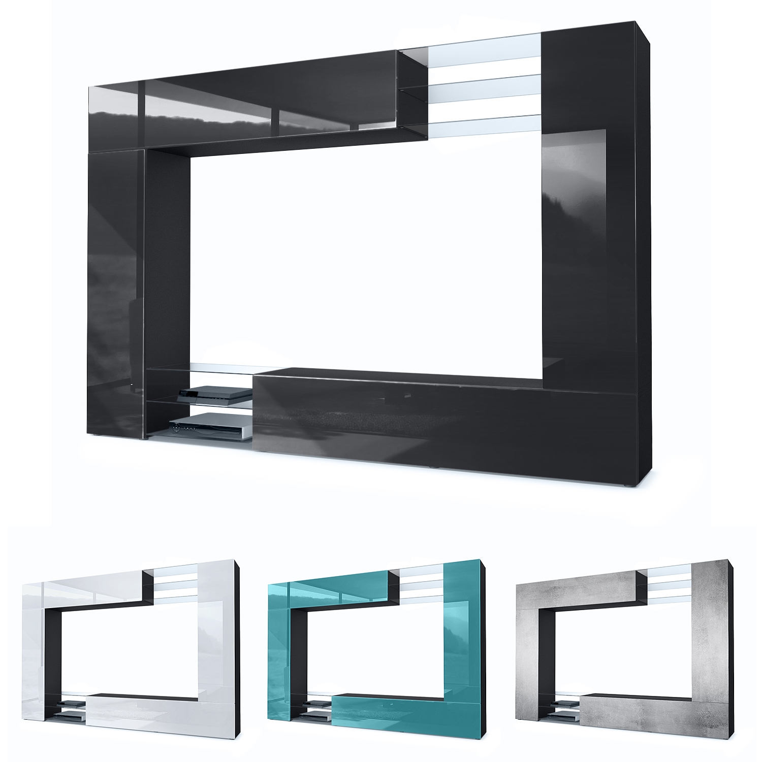 Für eine besondere Eleganz sorgen die Fronten der Wohnzimmerwand, erhältlich in vielen verschiedenen Farbvarianten, die Ihnen eine Vielzahl an Kombinationsmöglichkeiten bieten. Durch die Oberflächenbeschichtung erhalten Sie ein besonders pflegeleichtes Produkt. Für die Reinigung können Sie auf Chemie verzichten - es reicht ein leicht angefeuchtetes Tuch, um die wasserfesten Oberflächen angemessen zu reinigen.