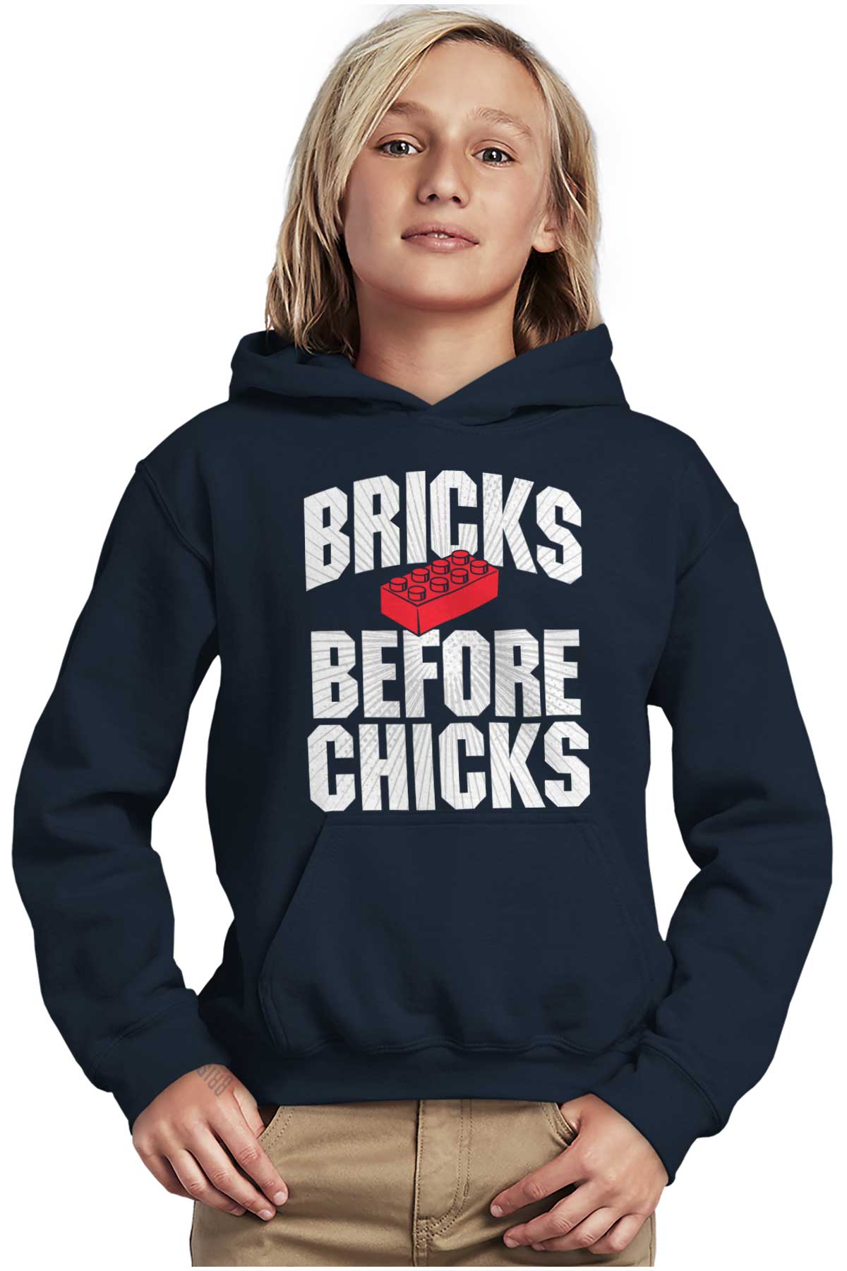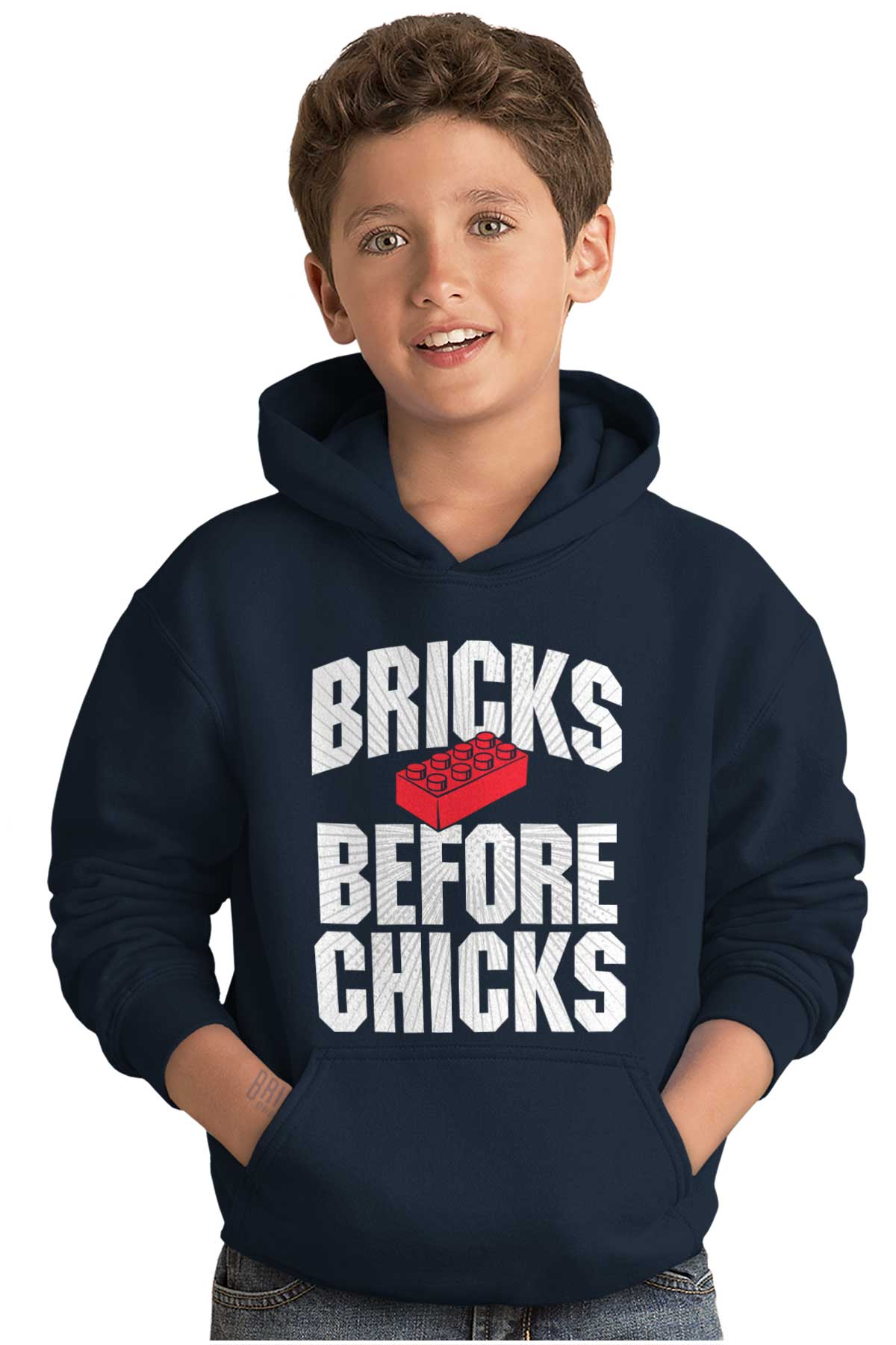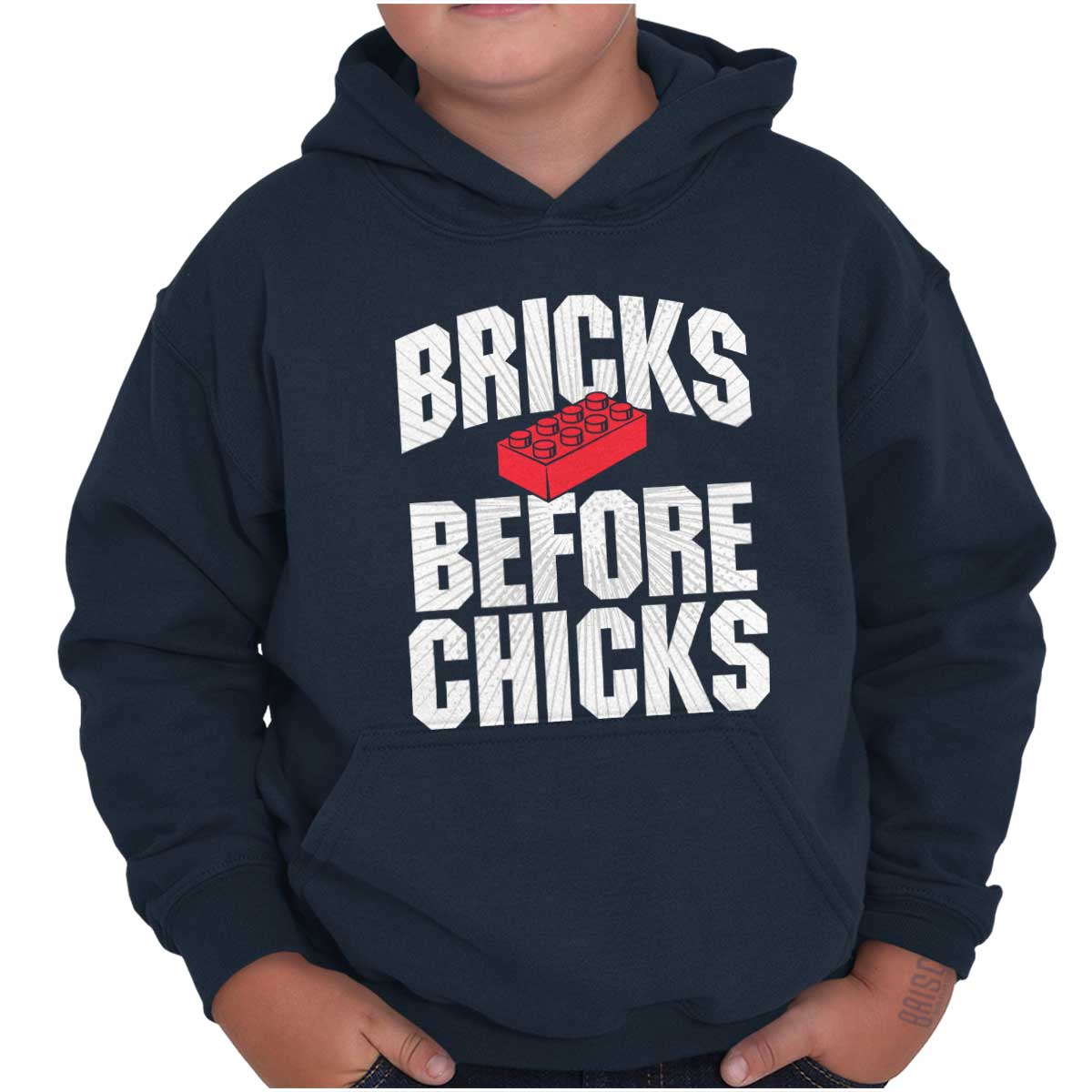 Funny Bricks Before Chicks Joke Kids Hoodie Sweatshirt Boys