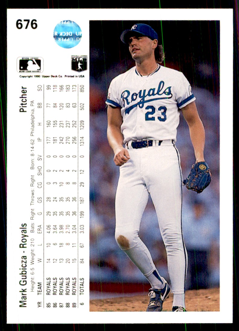 | Description: | Mark Gubicza | | Category: | Baseball | | Year: | 1990 | | Product: | Upper Deck | | Team: | Baseball Cards | | Card Number: | 676 | | Dimensions: | 3½" x 2½" |