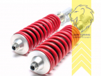 Unsere TA-Technix Gewindefahrwerke sind ein Highlight im Preis/Leistungsverhältnis. Durch die Höhenverstellung kann das Fahrzeug auf die verschiedensten Streckenansprüche individuell eingestellt werden. Zudem erlaubt es die perfekte Abstimmung auf die jeweils gewünschte Rad-Reifenkombination und die gewünschte Tiefe des Fahrzeuges. Auch z.B. bei einem Wechsel der Felgengröße, oder der Montage von Winterreifen, kann das Fahrzeug jederzeit optisch auf die neuen Ansprüche eingestellt werden. Die vorhandene Vorspannfeder erlaubt auch bei extremen Tieferlegungen genügend Vorspannung und ausreichenden Restfederweg. Alle Fahrwerke sind im TÜV geprüften Bereich höhenverstellbar. Darüber hinaus verfügen die Gewindefahrwerke über genügend Restgewinde, um das Fahrzeug im Motorsport-Bereich oder für Show-Zwecke noch tiefer zu legen, als vom TÜV zugelassen ist. Ein Verstellschlüssel ist selbstverständlich im Lieferumfang enthalten.- individuell höhenverstellbar