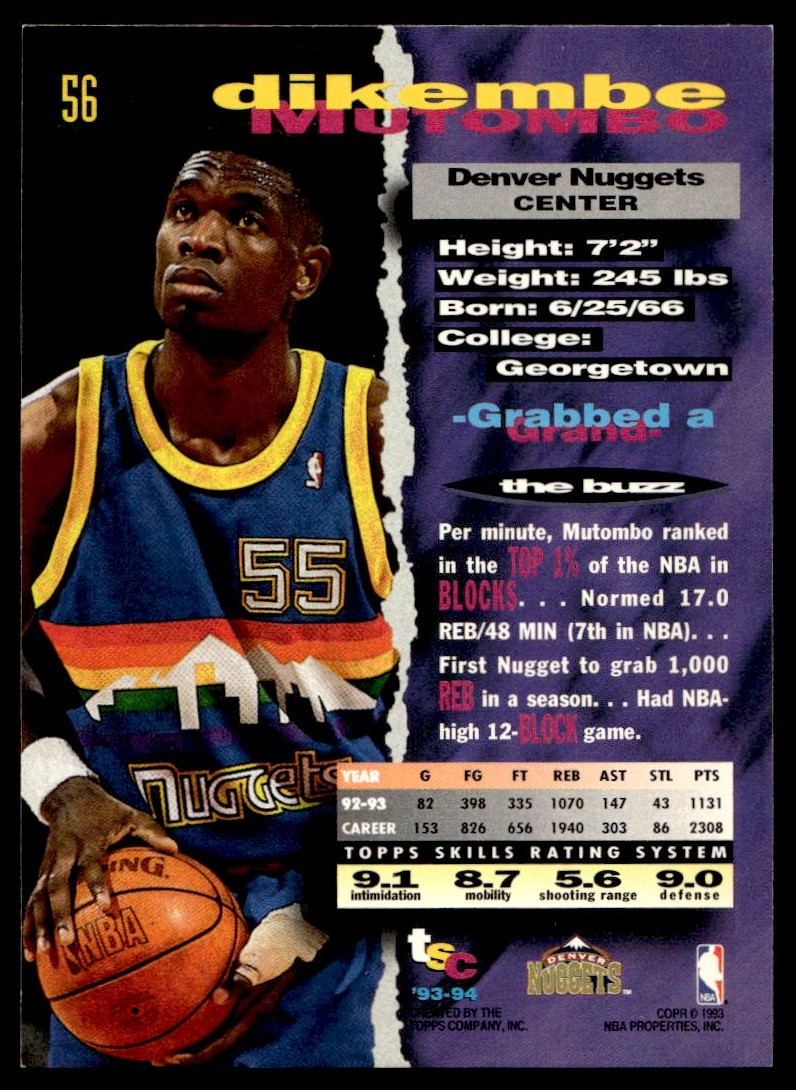 1993-94 Stadium Club First Day Issue 56 Dikembe Mutombo