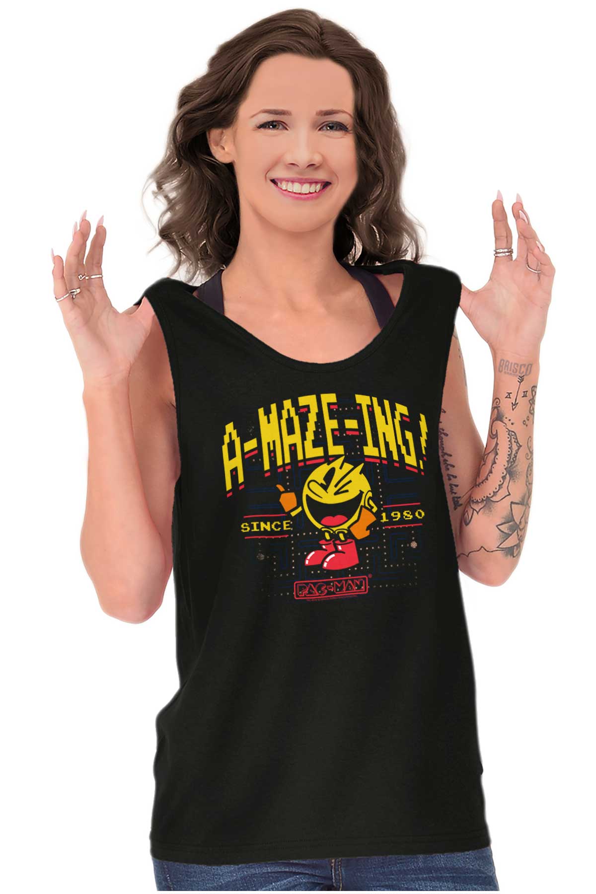 1980 Arcade Game PACMAN A-Maze-Ing Tank Top T Shirts Men Women