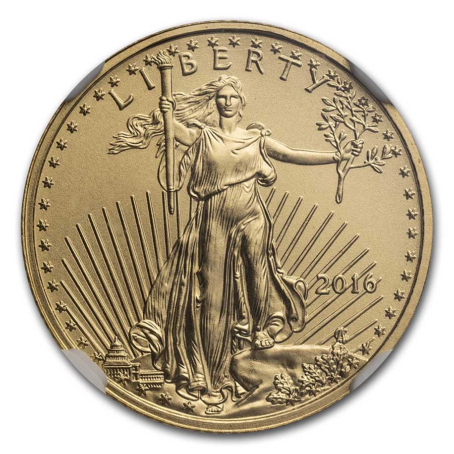 The beloved design on this fractional Gold Eagle is often considered one of the most beautiful designs in all of American coinage. Add this 2016 1/10 oz Gold Eagle to your cart today!