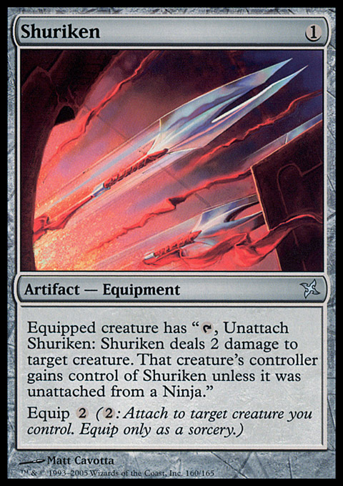 | | Name: | Shuriken | | Set: | Betrayers of Kamigawa | | Number: | 160 | | Condition: | Light Play | | Language: | English | | Variation: | Non-Foil | |