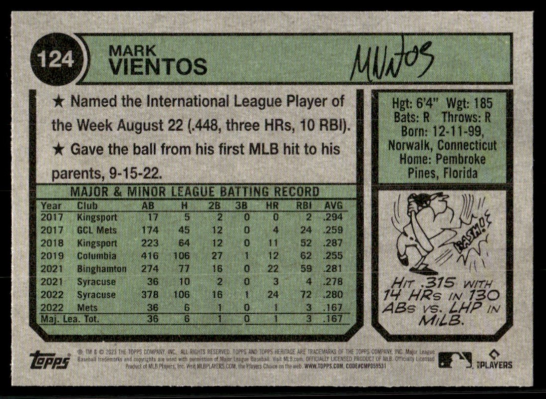 2023 Topps Heritage 124 Mark Vientos