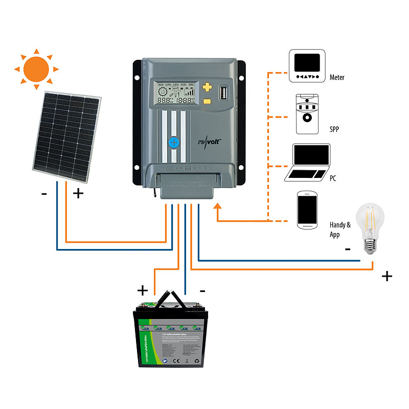 Sicher wie nie: Dank Kontrollsystem sind Ihre Akkus zuverlässig geschützt vor Kurzschluss, falscher Verkabelung und Überladung. Der Regler achtet auf den Ladestand und schützt vor Tiefentladung. Das erhöht natürlich auch die Lebensdauer Ihrer Batterien deutlich.