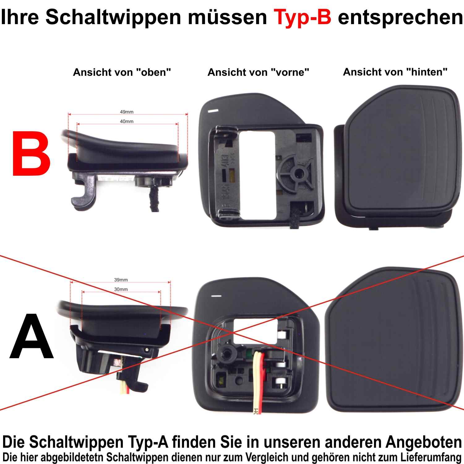 Nur wenn unsere Fotos mit Ihren Schaltwippen übereinstimmen, passen diese auch.