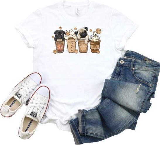 Crafted from ultra-soft cotton, this t-shirt ensures all-day comfort, making it an ideal choice for casual outings or cozy days at home. Celebrate your love for pugs and coffee with this unique piece that’s sure to bring smiles and compliments!