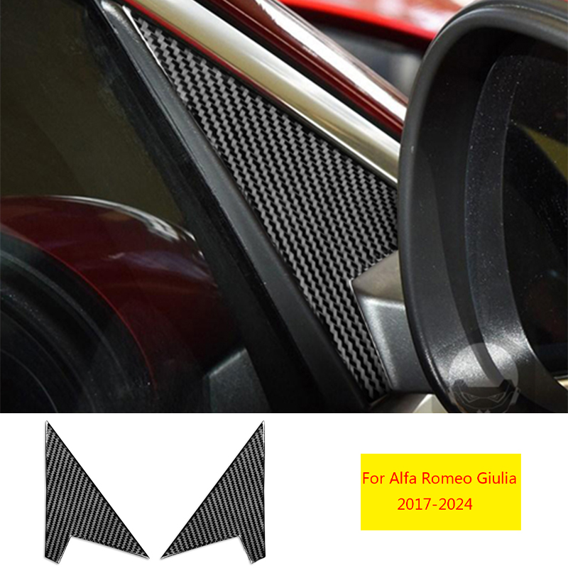 For Alfa Romeo Giulia 2017-2024 Real Carbon Fiber Rear View Mirror A-Pillar Trim