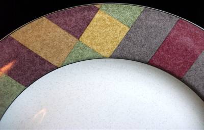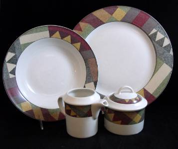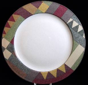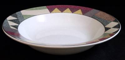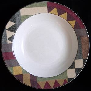 This appealing pattern was produced by Studio Nova from 1995 through 2006 and is now discontinued. It features a geometric Southwest rim design and a white center.