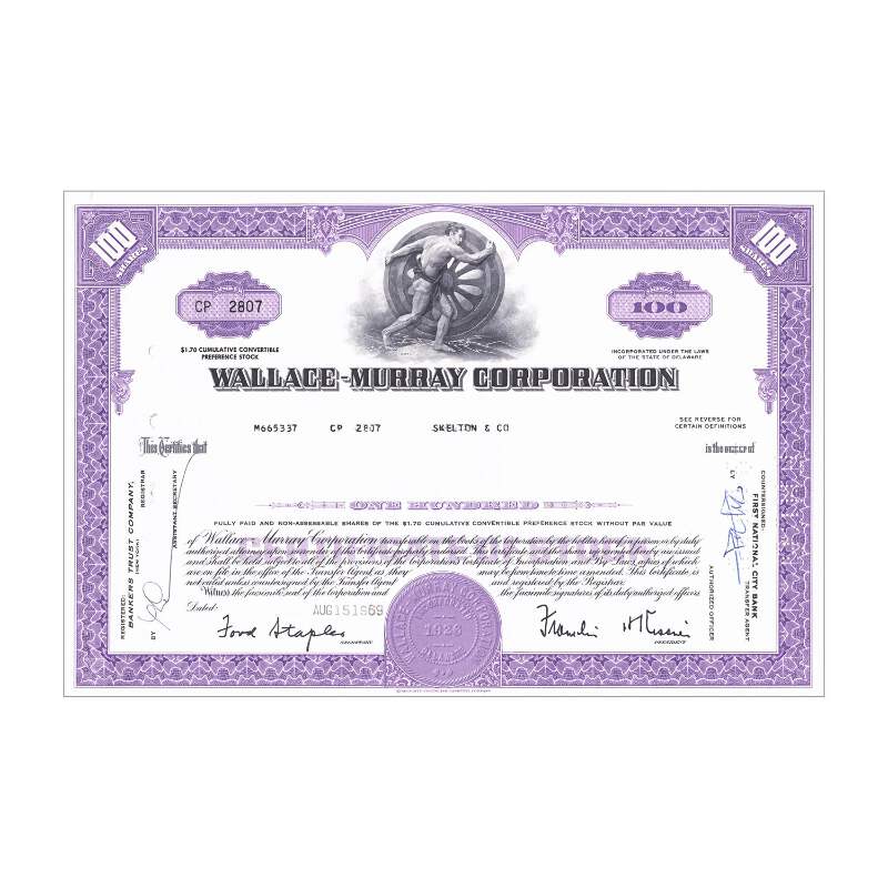 A stock certificate is a physical piece of paper representing ownership in a company. Stock certificates include information such as the shareholder name, number of shares owned, date issued, an identification number, and usually a corporate seal and signatures. Unlike a stock, a bond is a fixed income instrument that represents a loan made by an investor to a borrower, typically a government or corporation, to finance projects and operations. A bond certificate includes the loan terms, bond holder, principal due date, schedule of interest payments, and usually a corporate seal and signatures. Many vintage bond certificates also include attached interest payment coupons, which needed to be physically cut off the bond and redeemed for each interest payment.