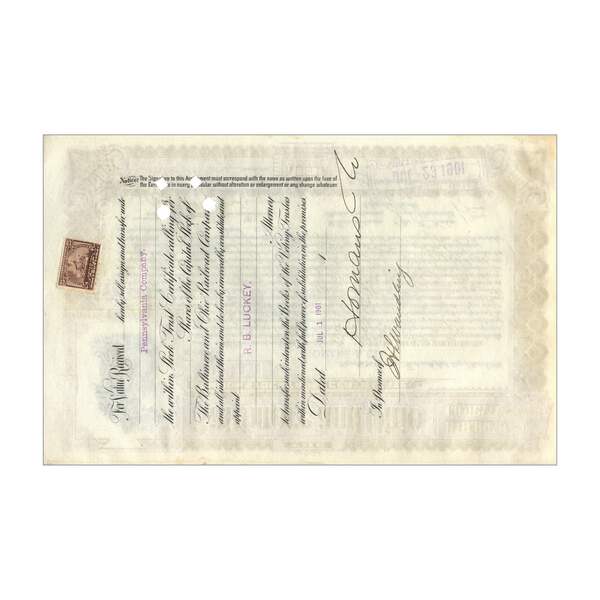 The expert staff of Olevian Numismatic Rarities unconditionally guarantees the authenticity of every historic document we sell, and all signatures contained therein. A certificate of authenticity will be included with each item. Your purchase will match the quality of the product shown but may vary slightly due to the original nature of historical documents. They may be stamped and/or punched cancelled and are no longer negotiable. Light creases, pinholes, and occasional handwriting may also be present. Shop with confidence and discover why people choose Olevian Numismatic Rarities when it matters most.