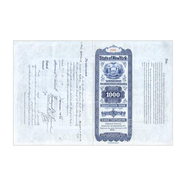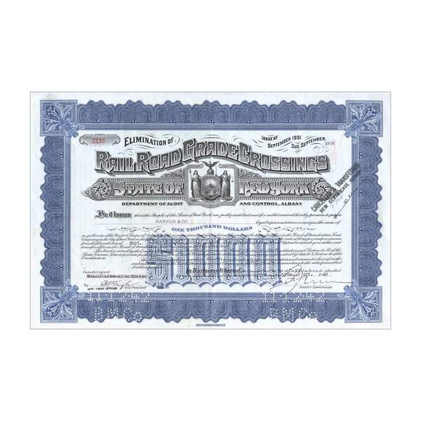 Elimination Of Railroad Crossings N.Y. Bond // $10,000 // Blue // 1930s-50s