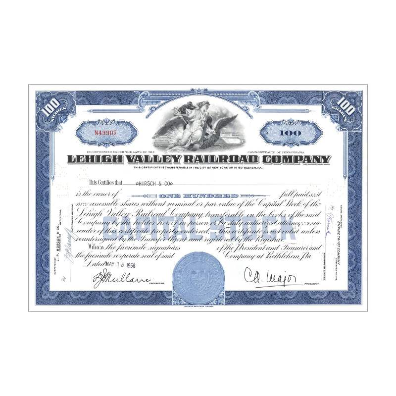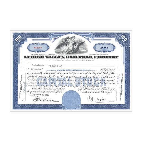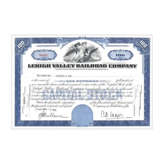 Lehigh Valley Railroad Co. Stock // 100 Shares // Blue // 1930s-50s